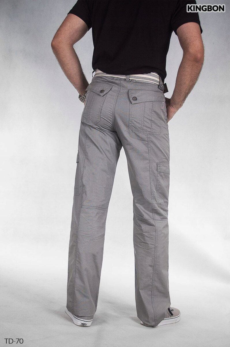 Zapinane na zamek błyskawiczny i guzik. Od zewnętrznej strony na wysokości pasa znajdują się dwa paski regulacyjne pozwalające bardzo dokładnie dopasować szerokość spodni do sylwetki. Spodnie posiadają aż 6 kieszeni. Z przodu dwie klasyczne wpuszczanie kieszenie na dłonie. Na pośladkach dwie duże naszywane kieszenie kryte patkami zapinanymi na napy. Na udach po dwie obszerne naszywane kieszenie, kryte patkami zapinanymi na napy. W pasie szlufki umożliwiające stylizacje z paskiem.
