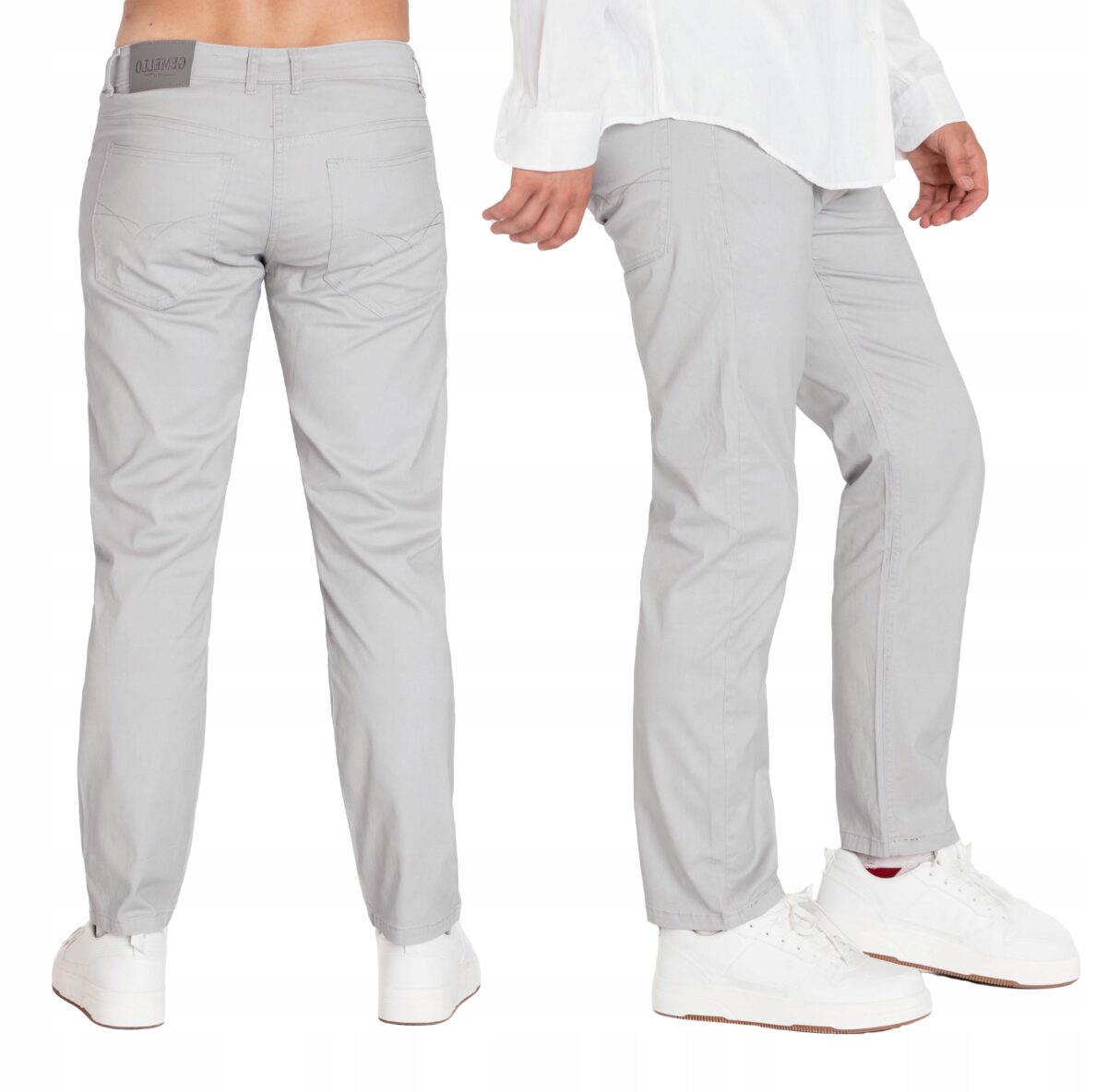 Cienkie bawełnianespodnie męskie o klasycznym kroju, to wygodne rozwiązanie na ciepłe i gorące dni wiosny i lata oraz niezbędny element wakacyjnej garderoby oraz udanych letnich stylizacji. Przewiewneiwygodne, idealne na co dzień jako element casualowego stroju, czyniąc go lekkim i dostosowanym do wysokich temperatur. Zapinane na kryty zamek błyskawiczny i metalowy guzik sygnowany logiem firmy. Z przodu mają dwie wpuszczane, ukośne kieszenie na dłonie oraz mniejszą kieszonkę tzw. bilonówkę. Z tyłu dwie naszywane kieszenie jak w typowych spodniach jeansowych. W pasie szlufki umożliwiające stylizacje z paskiem. Najbardziej podatne na uszkodzenia miejsca wzmocnione są dodatkowymi, podwójnymi przeszyciami.