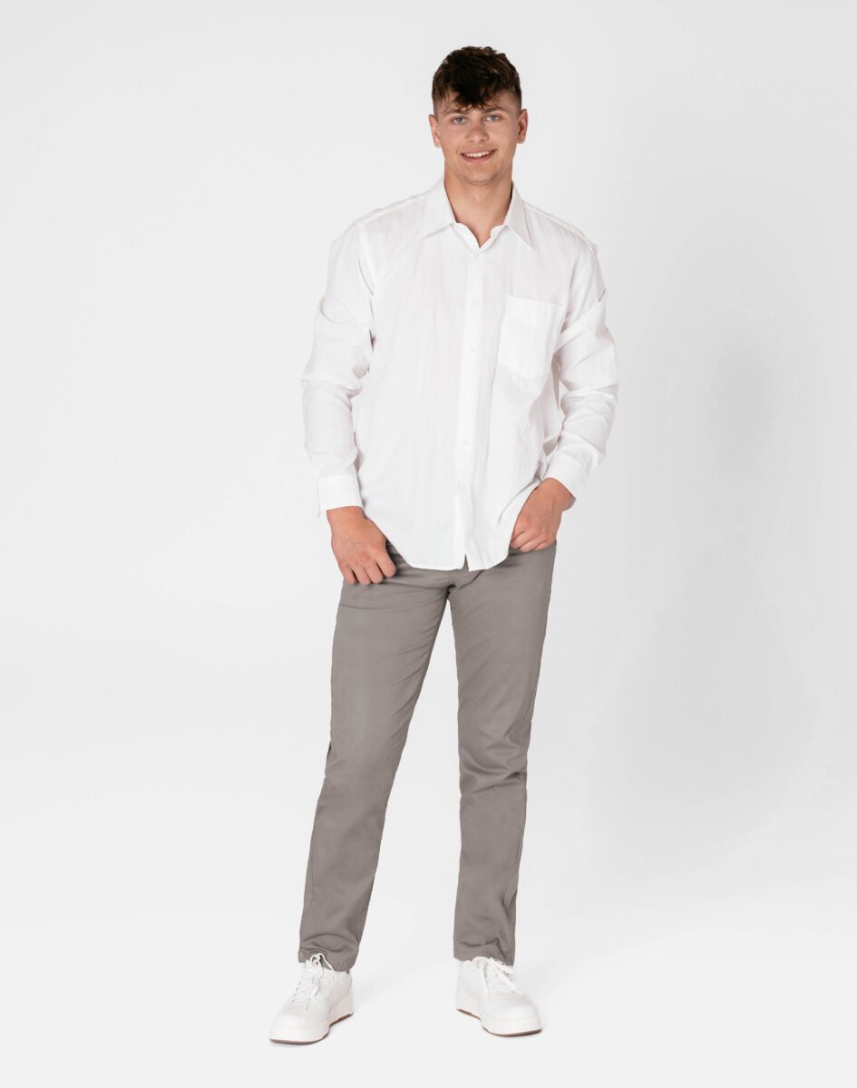 Uniwersalny zawsze modny fason z klasyczną prostą nogawką i standardowym stanem, o bardzo dobrym i sprawdzonym przez wielu klientów kroju. Wykonane z wysokiej jakościcienkiej i oddychającej tkaniny bawełnianej o letnim wybarwieniu. Odpowiedni na wysokie temperatury krój spodni pozwala na pełną swobodę ruchów, co daje wygodę przy siadaniu i zapewnia ogromny komfort noszenia. Idealnie nadają się na spacer w ciepłe dni i wieczory, weekendowy wypad z przyjaciółmi, doskonale spełniają rolę wakacyjnego stroju wprowadzając nieco swobody a przy tym zadając szyku.
