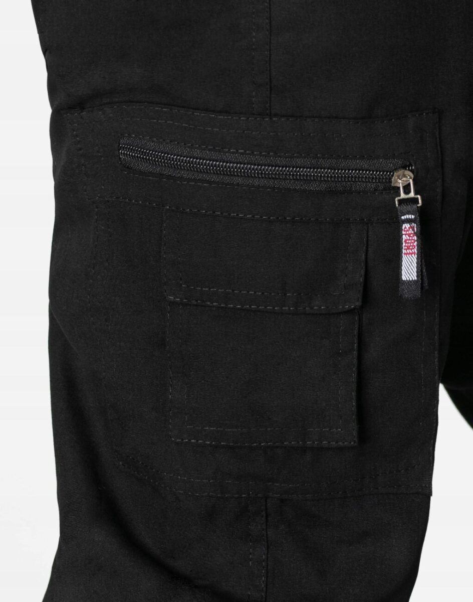 - Na udach po 2 naszywane kieszenie typu Cargo plus kieszonka zasuwana na zamek