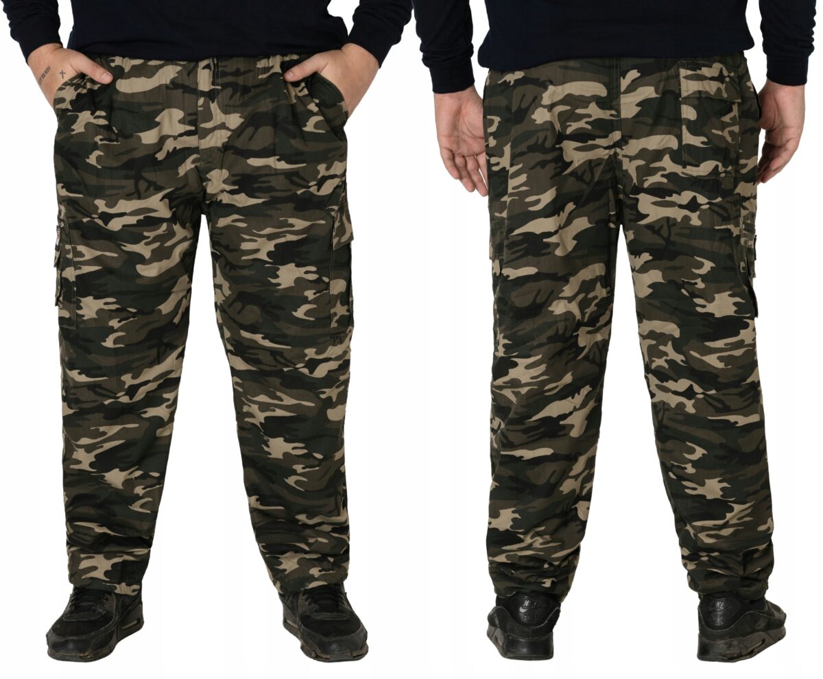 - Rodzaj: ocieplone polarem bojówki moro Cargo z 6-oma praktycznymi kieszeniami