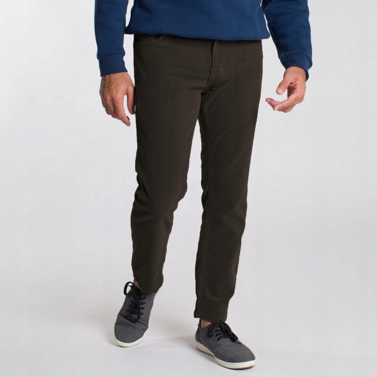Spodnie sztruksowe dla mężczyzn ceniących nowoczesne rozwiązania, sportowy wygodny styl i casualową elegancję, bez zbędnej wymyślności i udziwnień kroju.