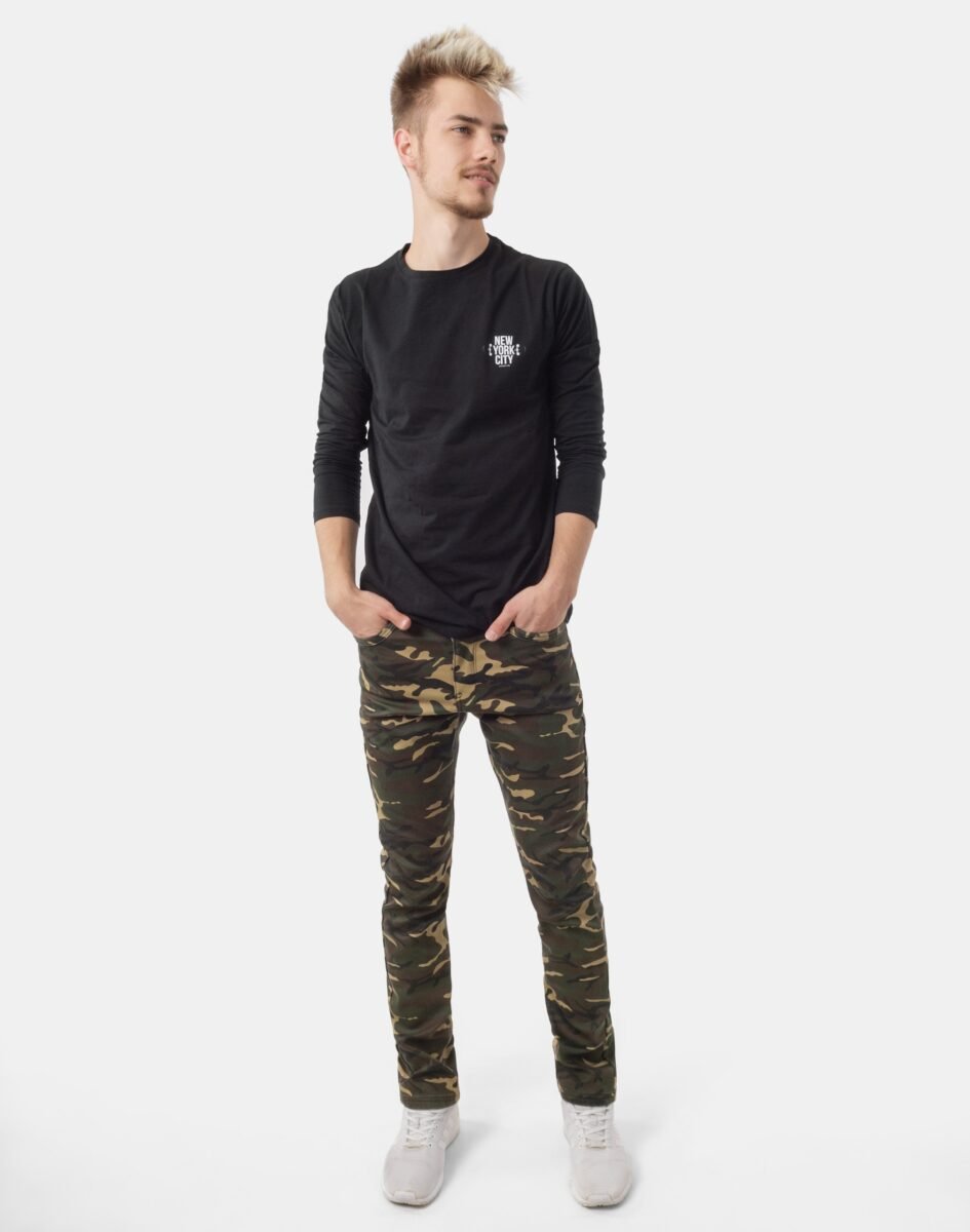 Spodnie mają klasyczny krój z prostą wąska nogawką. Zapinane są na zamek błyskawiczny i metalowy guzik sygnowany logiem firmy. Z przodu mają dwie kieszenie wpuszczane + bilonówka, z tyłu dwie kieszenie naszywane jak w typowych spodniach jeansowych. W pasie szlufki umożliwiające stylizacje z paskiem. Najbardziej podatne na uszkodzenia miejsca wzmocnione są dodatkowymi przeszyciami. Uszyte z mocnej tkaniny bawełnianej o gęstym splocie z niewielkim dodatkiem elastanu co pozwala na pełną swobodę ruchów, daje komfort przy siadaniu i zapewnia ogromny komfort noszenia.