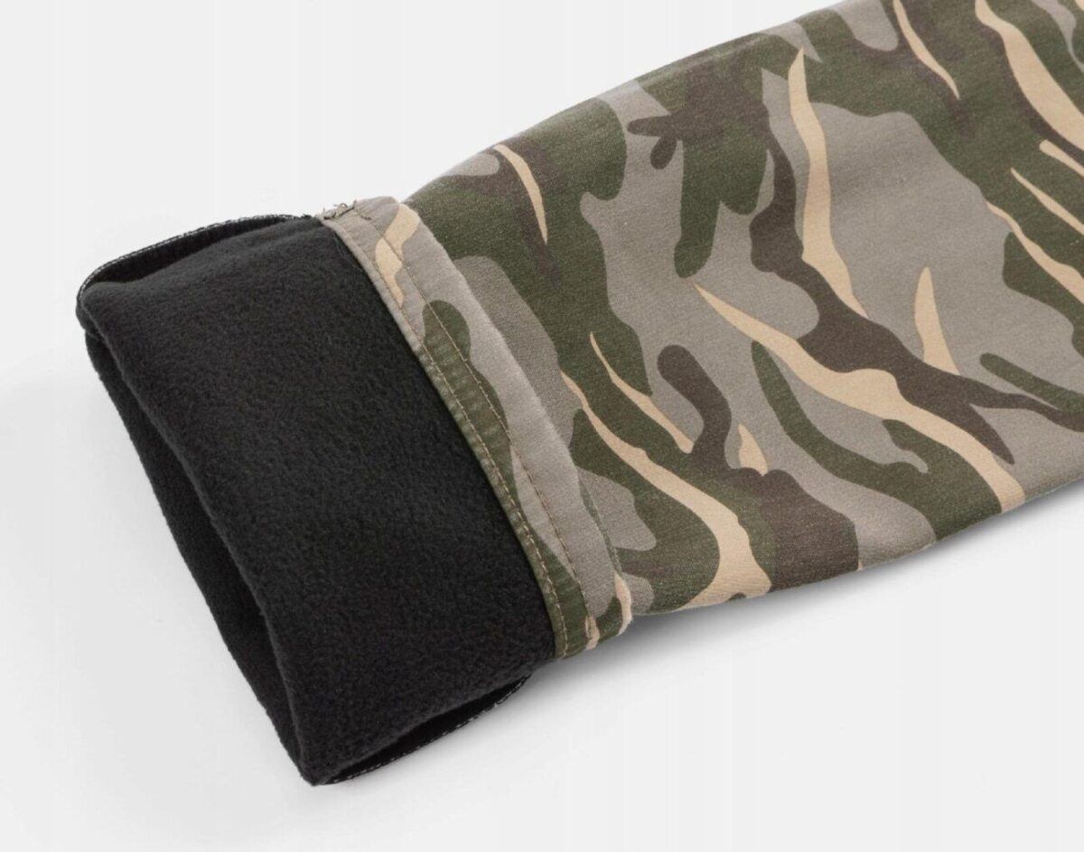 Oferowane przez nas spodnie są unikalnym połączeniem wysokiej jakości tkaniny bawełnianej o wzorze militarnym moro, a od wewnątrz bardzo lekkiego, ciepłego i przyjemnego w kontakcie ze skórą mikropolaru. Warstwa wewnętrzna spodni wykonana z mikropolaru, ma za zadanie zapewnić oddychalność, komfort termiczny i maksymalną ochronę w zmiennych warunkach i niskiej temperaturze. Spodnie są przez to bardzo ciepłe, wygodne i oddychające (utrzymują ciepły i suchy mikroklimat skóry) a jednocześnie wyjątkowo lekkie. Takie wykończenie wewnętrznej strony spodni zapewnia bardzo wysoki wskaźnik ochrony termicznej, jak również zdecydowanie podnosi komfort użytkowania tych spodni jesienią a zwłaszcza zimą.