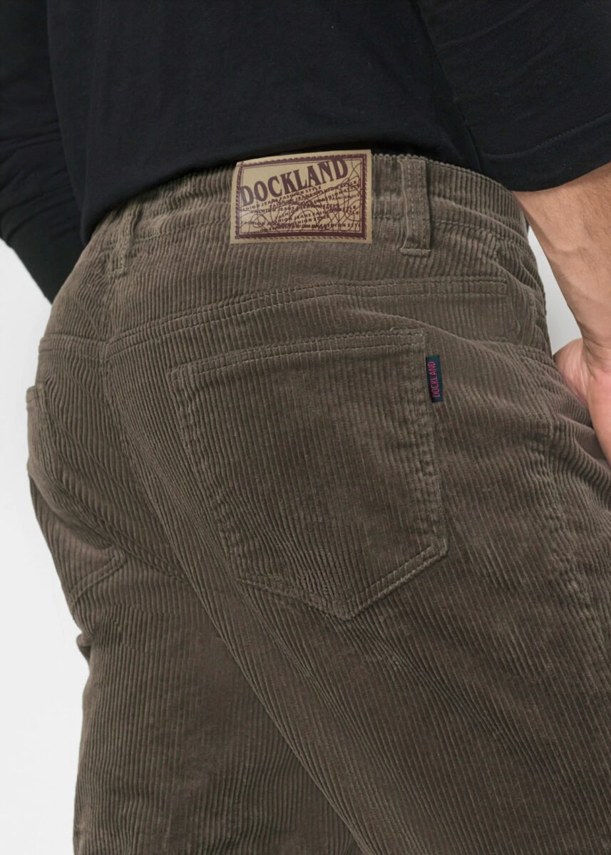 Wyprodukowane z ekologicznej tkaniny 100% bawełnianej w charakterystyczny gruby prążek, miękkiej i ciepłej, bardzo wygodnej w użytkowaniu. Delikatnie elastyczny materiał pozwala na pełną swobodę ruchów, co daje komfort przy siadaniu i zapewniają ogromny komfort noszenia. Zapinane są na kryty zamek błyskawiczny i metalowy guzik sygnowany logiem firmy. Z przodu mają dwie kieszonki zaokrąglone oraz mniejszą kieszonkę tzw. bilonówkę, a na tyle klasyczne kieszenie naszywane jak w typowych spodniach jeansowych. W pasie szlufki umożliwiające stylizacje z paskiem. Klasyczna prosta nogawka nie zaprasowana na kant. Najbardziej podatne na uszkodzenia miejsca wzmocnione są dodatkowymi przeszyciami oraz nitami. Prosty, klasyczny fason spodni Regular Fit o bardzo dobrym i sprawdzonym przez wielu zadowolonych klientów kroju.