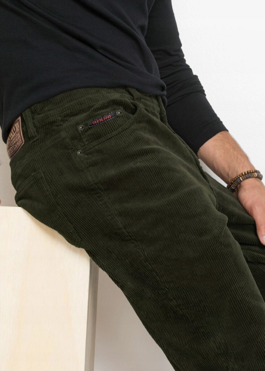 Spodnie sztruksowe dla mężczyzn ceniących nowoczesne rozwiązania, sportowy wygodny styl i casualową elegancję, bez zbędnej wymyślności i udziwnień kroju.
