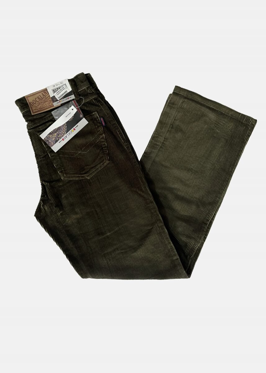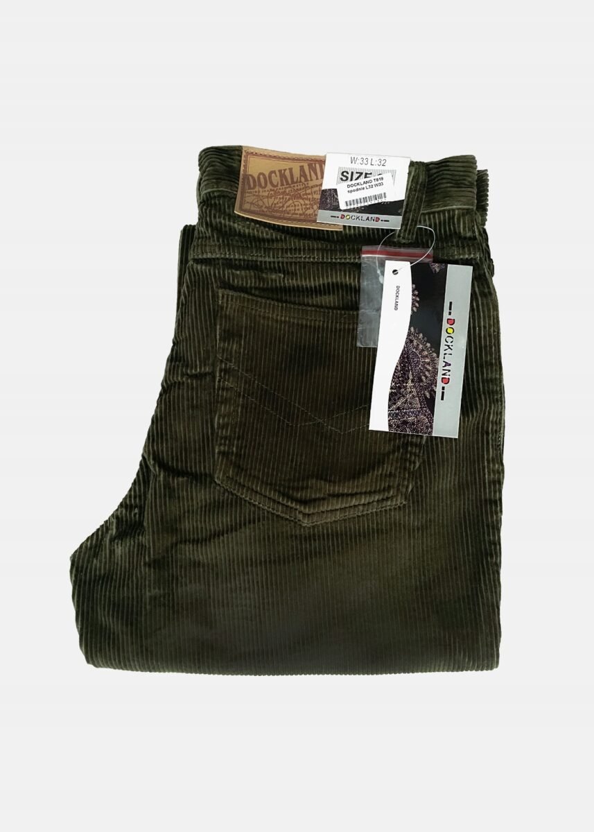 Wyprodukowane z ekologicznej tkaniny 100% bawełnianej w charakterystyczny gruby prążek, miękkiej i ciepłej, bardzo wygodnej w użytkowaniu. Delikatnie elastyczny materiał pozwala na pełną swobodę ruchów, co daje komfort przy siadaniu i zapewniają ogromny komfort noszenia. Zapinane są na kryty zamek błyskawiczny i metalowy guzik sygnowany logiem firmy. Z przodu mają dwie kieszonki zaokrąglone oraz mniejszą kieszonkę tzw. bilonówkę, a na tyle klasyczne kieszenie naszywane jak w typowych spodniach jeansowych. W pasie szlufki umożliwiające stylizacje z paskiem. Klasyczna prosta nogawka nie zaprasowana na kant. Najbardziej podatne na uszkodzenia miejsca wzmocnione są dodatkowymi przeszyciami oraz nitami. Prosty, klasyczny fason spodni Regular Fit o bardzo dobrym i sprawdzonym przez wielu zadowolonych klientów kroju.