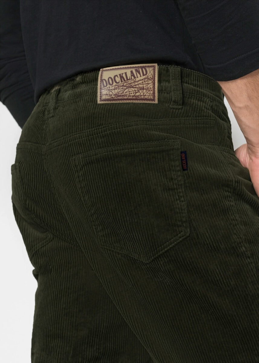 Wyprodukowane z ekologicznej tkaniny 100% bawełnianej w charakterystyczny gruby prążek, miękkiej i ciepłej, bardzo wygodnej w użytkowaniu. Delikatnie elastyczny materiał pozwala na pełną swobodę ruchów, co daje komfort przy siadaniu i zapewniają ogromny komfort noszenia. Zapinane są na kryty zamek błyskawiczny i metalowy guzik sygnowany logiem firmy. Z przodu mają dwie kieszonki zaokrąglone oraz mniejszą kieszonkę tzw. bilonówkę, a na tyle klasyczne kieszenie naszywane jak w typowych spodniach jeansowych. W pasie szlufki umożliwiające stylizacje z paskiem. Klasyczna prosta nogawka nie zaprasowana na kant. Najbardziej podatne na uszkodzenia miejsca wzmocnione są dodatkowymi przeszyciami oraz nitami. Prosty, klasyczny fason spodni Regular Fit o bardzo dobrym i sprawdzonym przez wielu zadowolonych klientów kroju.
