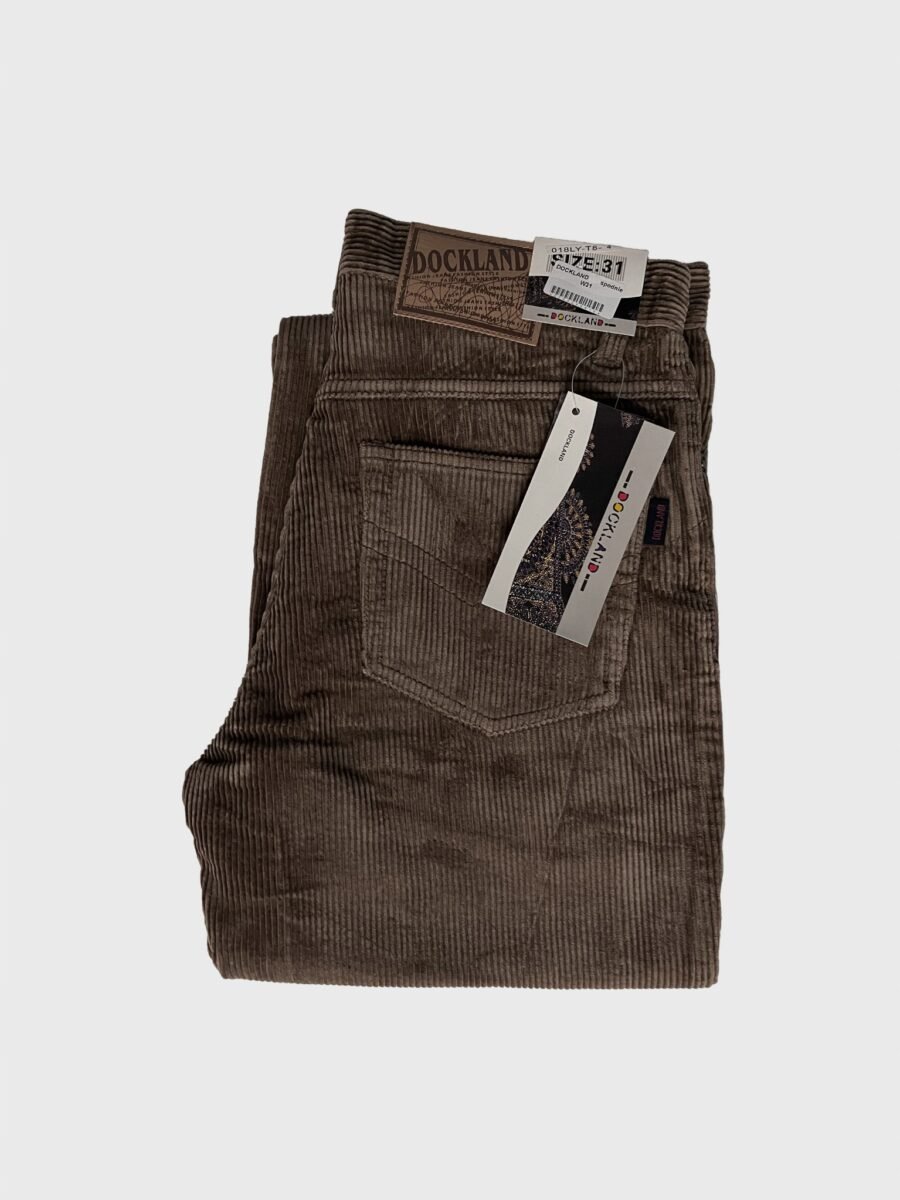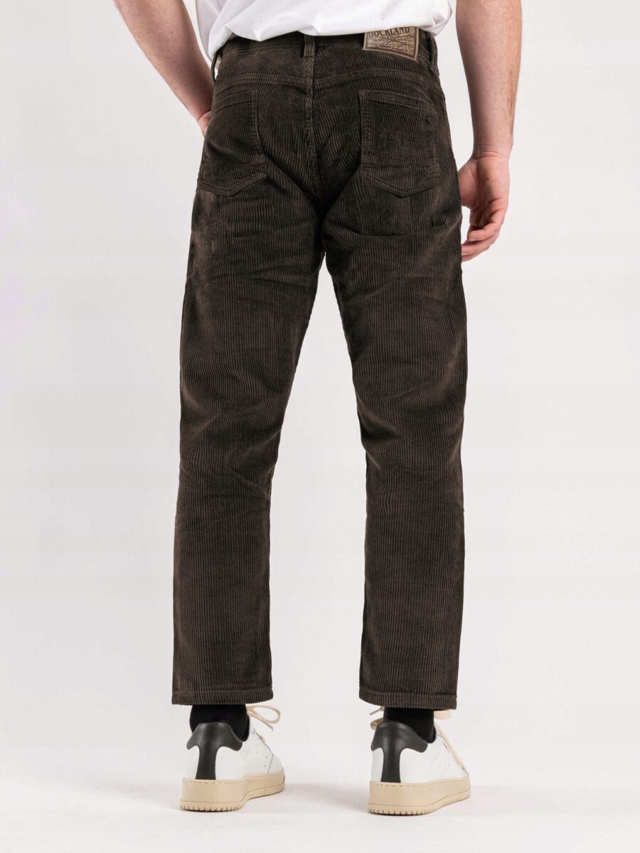 Wyprodukowane z ekologicznej tkaniny 100% bawełnianej w charakterystyczny gruby prążek, miękkiej i ciepłej, bardzo wygodnej w użytkowaniu. Delikatnie elastyczny materiał pozwala na pełną swobodę ruchów, co daje komfort przy siadaniu i zapewniają ogromny komfort noszenia. Zapinane są na kryty zamek błyskawiczny i metalowy guzik sygnowany logiem firmy. Z przodu mają dwie kieszonki zaokrąglone oraz mniejszą kieszonkę tzw. bilonówkę, a na tyle klasyczne kieszenie naszywane jak w typowych spodniach jeansowych. W pasie szlufki umożliwiające stylizacje z paskiem. Klasyczna prosta nogawka nie zaprasowana na kant. Najbardziej podatne na uszkodzenia miejsca wzmocnione są dodatkowymi przeszyciami oraz nitami. Prosty, klasyczny fason spodni Regular Fit o bardzo dobrym i sprawdzonym przez wielu zadowolonych klientów kroju.