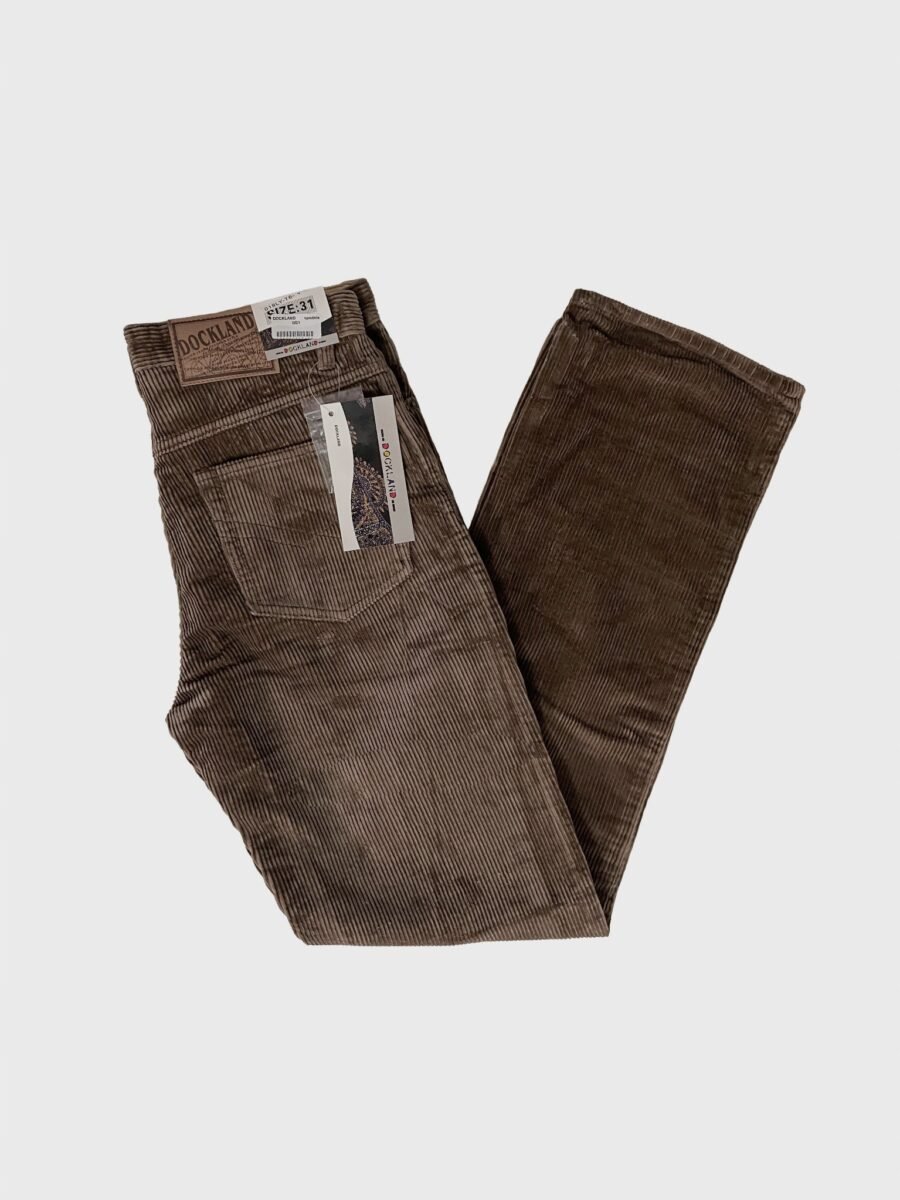 Wyprodukowane z ekologicznej tkaniny 100% bawełnianej w charakterystyczny gruby prążek, miękkiej i ciepłej, bardzo wygodnej w użytkowaniu. Delikatnie elastyczny materiał pozwala na pełną swobodę ruchów, co daje komfort przy siadaniu i zapewniają ogromny komfort noszenia. Zapinane są na kryty zamek błyskawiczny i metalowy guzik sygnowany logiem firmy. Z przodu mają dwie kieszonki zaokrąglone oraz mniejszą kieszonkę tzw. bilonówkę, a na tyle klasyczne kieszenie naszywane jak w typowych spodniach jeansowych. W pasie szlufki umożliwiające stylizacje z paskiem. Klasyczna prosta nogawka nie zaprasowana na kant. Najbardziej podatne na uszkodzenia miejsca wzmocnione są dodatkowymi przeszyciami oraz nitami. Prosty, klasyczny fason spodni Regular Fit o bardzo dobrym i sprawdzonym przez wielu zadowolonych klientów kroju.