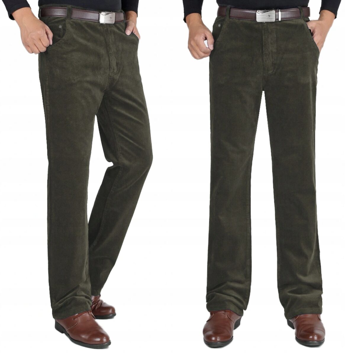 Ciepłe Spodnie Sztruksowe Męskie Sztruksy dla Wysokich TANER 98 cm/36 zielo