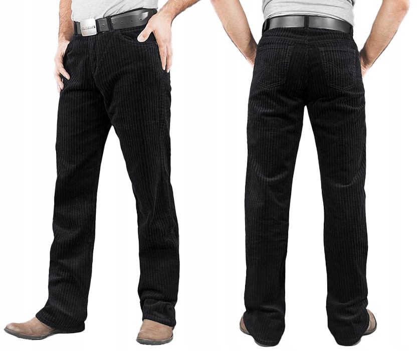 Ciepłe Spodnie Sztruksowe Męskie Sztruksy Gruby Prążek na Zimę BT01 W35 L32
