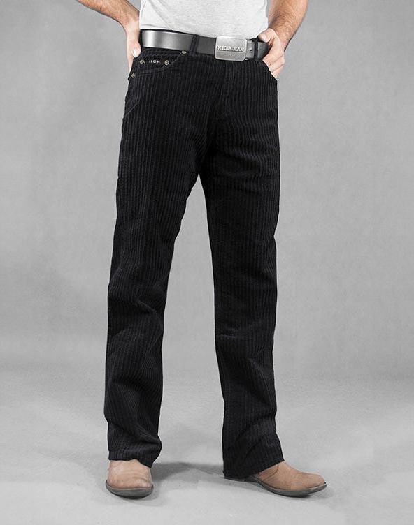 Wyprodukowane z ekologicznej tkaniny 100% bawełnianej w charakterystyczny gruby prążek, miękkiej i ciepłej, bardzo wygodnej w użytkowaniu. Delikatnie elastyczny materiał pozwala na pełną swobodę ruchów, co daje komfort przy siadaniu i zapewniają ogromny komfort noszenia. Zapinane są na kryty zamek błyskawiczny i metalowy guzik sygnowany logiem firmy. Z przodu mają dwie kieszonki zaokrąglone oraz mniejszą kieszonkę tzw. bilonówkę, a na tyle klasyczne kieszenie naszywane jak w typowych spodniach jeansowych. W pasie szlufki umożliwiające stylizacje z paskiem. Klasyczna prosta nogawka nie zaprasowana na kant. Najbardziej podatne na uszkodzenia miejsca wzmocnione są dodatkowymi przeszyciami oraz nitami. Prosty, klasyczny fason spodni Regular Fit o bardzo dobrym i sprawdzonym przez wielu zadowolonych klientów kroju.