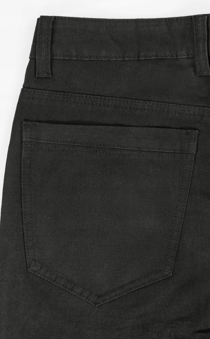 Spodnie zapinane są na zamek błyskawiczny i guzik. Z przodu dwie kieszenie wpuszczane, z tyłu dwie kieszenie naszywane jak w typowych spodniach jeansowych. W pasie szlufki umożliwiające stylizacje z paskiem. Najbardziej podatne na uszkodzenia miejsca wzmocnione są dodatkowymi przeszyciami oraz nitami.