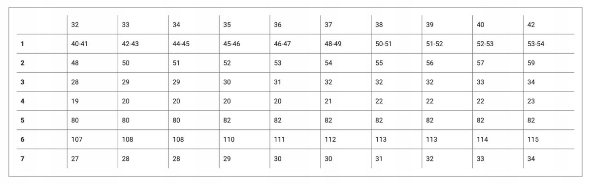 TABELA ROZMIARÓW