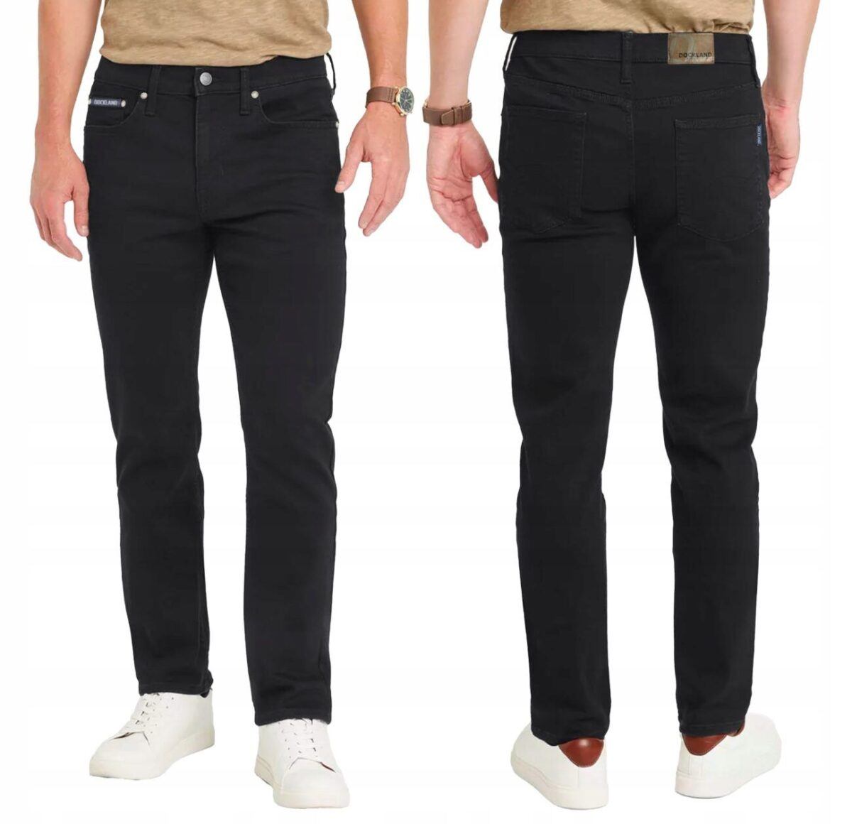 Klasyczne i ponadczasowe spodnie męskie bawełniane model 21568#, umiarkowanie swobodne w biodrach, o prostych, smukłych nogawkach to jeden z najczęściej wybieranych przez mężczyzn modeli spodni. Wykonane z wysokiej jakości trwałej i mocnej tkaniny 100% bawełnianej o jednolitym czarnym wybarwieniu, wyjątkowo wygodnej w użytkowaniu. Zapinane na kryty zamek błyskawiczny i metalowy guzik sygnowany logiem firmy. Z przodu mają dwie zaokrąglone kieszonki oraz jedną mniejszą tzw. bilonówkę, a na tyle klasyczne naszywane kieszenie jak w typowych spodniach jeansowych. Najbardziej podatne na uszkodzenia miejsca wzmocnione są podwójnymi przeszyciami oraz metalowymi nitami. W pasie szlufki umożliwiające stylizacje z paskiem.