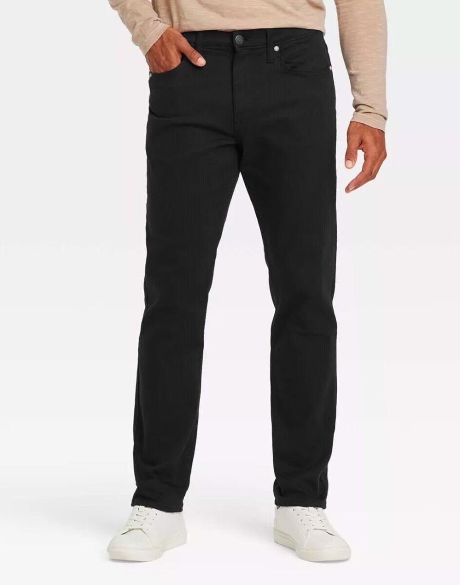 Klasyczne i ponadczasowe spodnie męskie bawełniane model LY098#, umiarkowanie swobodne w biodrach, o prostych, smukłych nogawkach to jeden z najczęściej wybieranych przez mężczyzn modeli spodni. Wykonane z wysokiej jakości trwałej, mocnej tkaniny z czystej bawełny o najlepszej fakturze typu Bedford i jednolitym czarnym wybarwieniu, wyjątkowo wygodnej w użytkowaniu. Zapinane na kryty zamek błyskawiczny i metalowy guzik sygnowany logiem firmy. Z przodu mają dwie zaokrąglone kieszonki oraz jedną mniejszą tzw. bilonówkę, a na tyle klasyczne naszywane kieszenie jak w typowych spodniach jeansowych. Najbardziej podatne na uszkodzenia miejsca wzmocnione są podwójnymi przeszyciami oraz metalowymi nitami. W pasie szlufki umożliwiające stylizacje z paskiem.