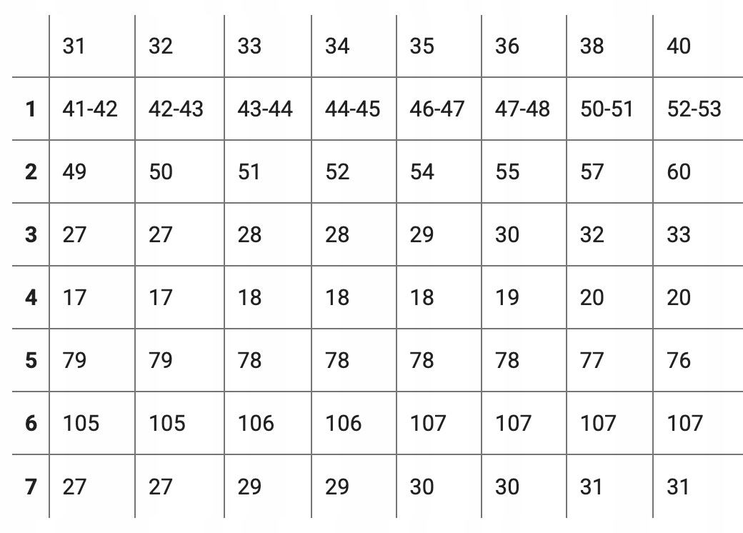 TABELA ROZMIARÓW