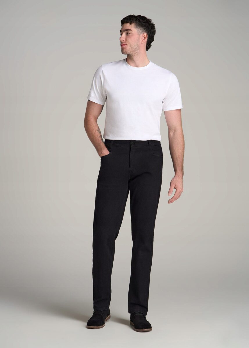 Długie Czarne Jeansy Męskie z Prostą Nogawką dla Wysokich