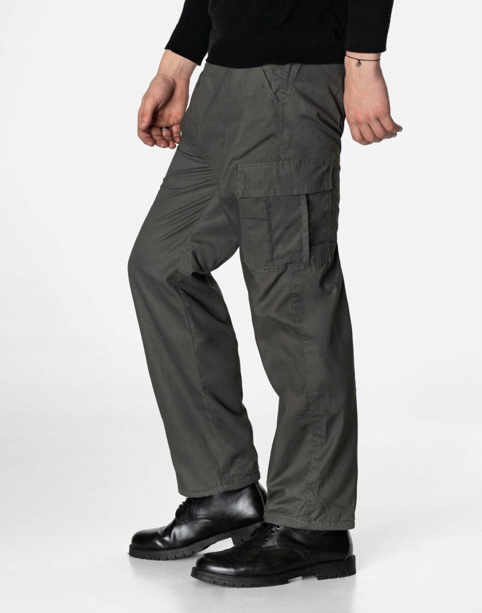 Uszyte z solidnej i mocnej tkaniny bawełnianej z niewielkim dodatkiem poliestru o gęstym zapewniającym dużą wytrzymałość splocie, co zwiększa odporność na uszkodzenia mechaniczne oraz szybkość transportu wilgoci z powierzchni ciała na zewnątrz. Z przodu mają dwie klasyczne wpuszczanie kieszenie na dłonie. Z tyłu naszywana kieszeń kryta patką zapinana na rzepa. Na udach 2 duże naszywane kieszenie transportowe typu Cargo jedna kryta patką zapinana na rzep, druga zasuwana na zamek błyskawiczny plus mała kieszonka kryta patką zapinaną na rzep. Precyzyjne dopasowanie w pasie zapewnia szeroki, elastyczny pas ściągający oraz dodatkowo wpuszczona w pasek taśma regulacyjna z możliwością jej zawiązywania. Wygodny militarny krój typu bojówki Cargo pozwala na pełną swobodę ruchów, co daje użytkownikowi wygodę przy siadaniu i zapewnia ogromny komfort noszenia. Najbardziej podatne na uszkodzenia miejsca wzmocnione są dodatkowymi podwójnymi przeszyciami.
