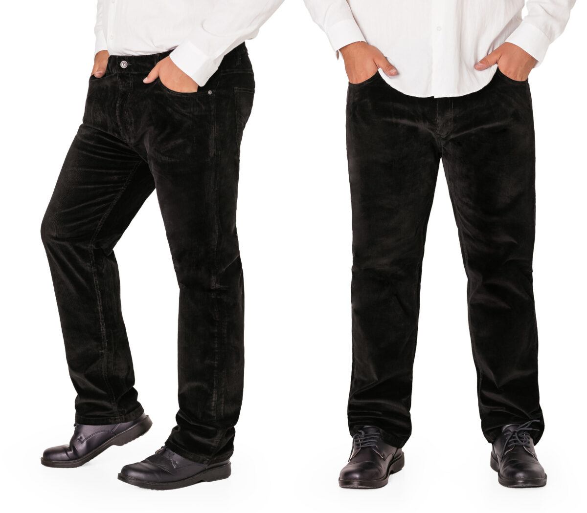 Duże Ciepłe Spodnie Męskie Sztruksowe Czarne Sztruksy Bawełna 2185A W38 L34