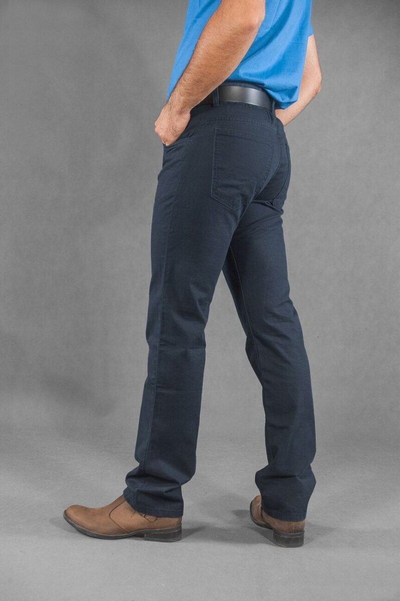 Niesłychanie wygodne i praktyczne podczas użytkowania spodnie męskie bawełniane polskiej firmy RADER ze standardowym stanem i klasyczną lekko zwężaną nogawką to jeden z najczęściej wybieranych modeli spodni. Wykonane z wysokiej jakości trwałej i mocnej tkaniny bawełnianej z niewielkim dodatkiem elastanu (streczu) o gęstym, drobnym splocie i jednolitym wybarwieniu. Niewielki dodatek streczu sprawia, że spodnie są bardziej elastyczne i bardzo dobrze dopasowują się do każdej sylwetki. Pozwalają na pełną swobodę ruchów, co daje komfort przy siadaniu i zapewnia ogromny komfort noszenia. Zapinane są na kryty zamek błyskawiczny i guzik sygnowany logiem firmy. Z przodu mają dwie kieszonki zaokrąglone oraz mniejszą kieszonkę tzw. bilonówkę, a na tyle klasyczne kieszenie naszywane jak w typowych spodniach jeansowych. W pasie szlufki umożliwiające stylizacje z paskiem. Najbardziej podatne na uszkodzenia miejsca wzmocnione są dodatkowymi przeszyciami oraz nitami.