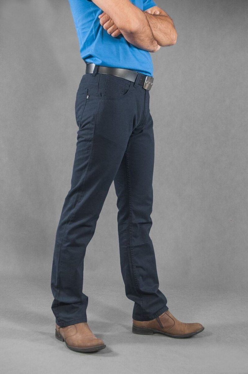 Niesłychanie wygodne i praktyczne podczas użytkowania spodnie męskie bawełniane polskiej firmy RADER ze standardowym stanem i klasyczną lekko zwężaną nogawką to jeden z najczęściej wybieranych modeli spodni. Wykonane z wysokiej jakości trwałej i mocnej tkaniny bawełnianej z niewielkim dodatkiem elastanu (streczu) o gęstym, drobnym splocie i jednolitym wybarwieniu. Niewielki dodatek streczu sprawia, że spodnie są bardziej elastyczne i bardzo dobrze dopasowują się do każdej sylwetki. Pozwalają na pełną swobodę ruchów, co daje komfort przy siadaniu i zapewnia ogromny komfort noszenia. Zapinane są na kryty zamek błyskawiczny i guzik sygnowany logiem firmy. Z przodu mają dwie kieszonki zaokrąglone oraz mniejszą kieszonkę tzw. bilonówkę, a na tyle klasyczne kieszenie naszywane jak w typowych spodniach jeansowych. W pasie szlufki umożliwiające stylizacje z paskiem. Najbardziej podatne na uszkodzenia miejsca wzmocnione są dodatkowymi przeszyciami oraz nitami.