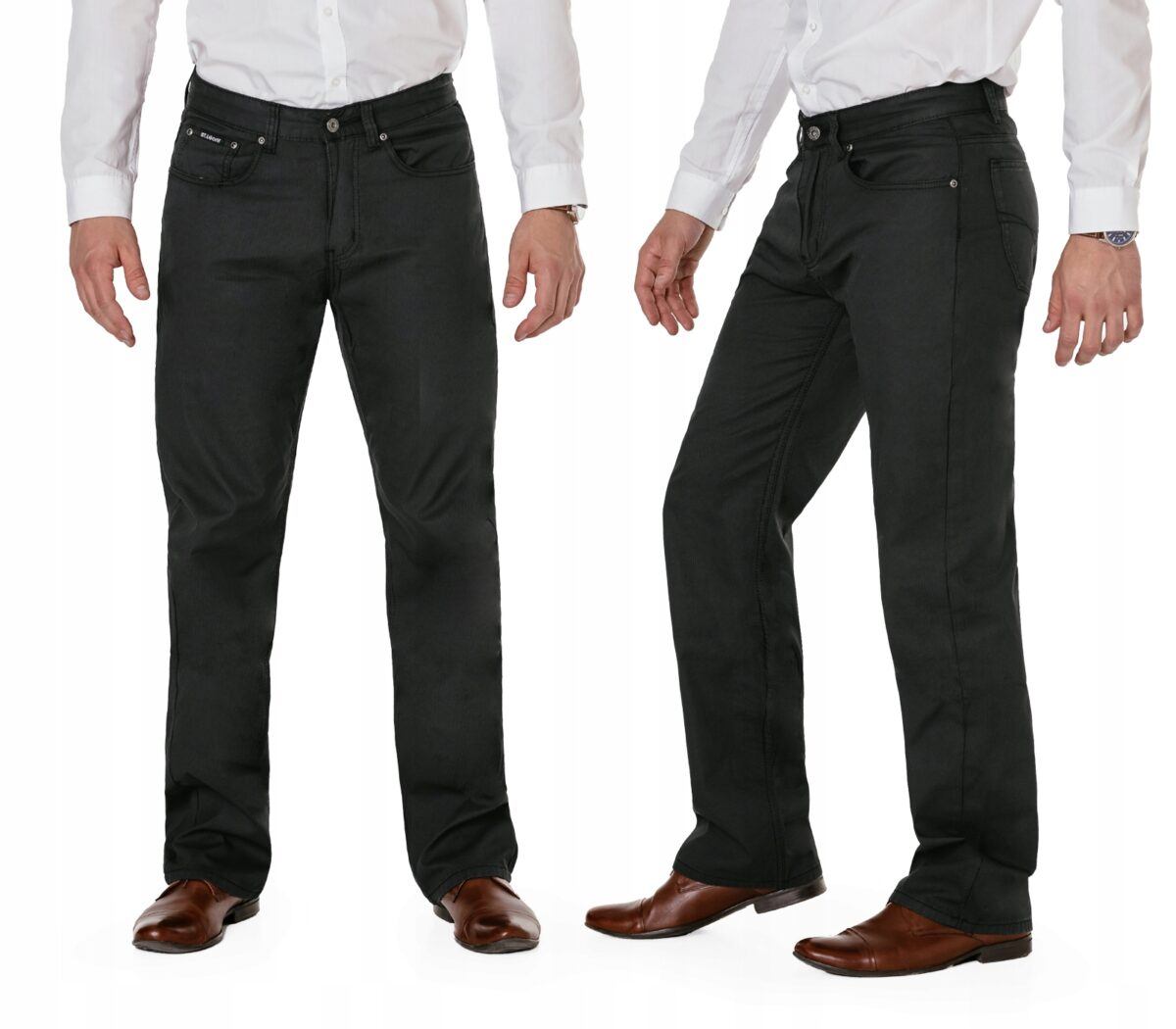 Eleganckie Cienkie Czarne Spodnie Męskie Materiałowe Prosta Nogawka R11 W34