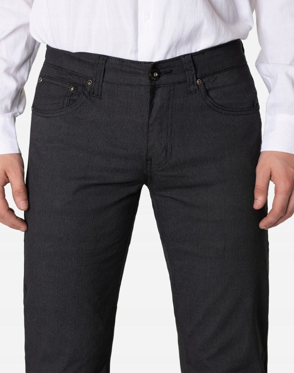 Cienkie bawełnianespodnie męskie o klasycznym kroju, to wygodne rozwiązanie na ciepłe i gorące dni wiosny i lata oraz niezbędny element wakacyjnej garderoby oraz udanych letnich stylizacji. Przewiewne i wygodne, idealne na co dzień jako element eleganckiego, męskiego, casualowego stroju, czyniąc go lekkim i dostosowanym do wysokich temperatur. Zapinane na kryty zamek błyskawiczny i metalowy guzik sygnowany logiem firmy. Z przodu mają dwie wpuszczane kieszenie na dłonie oraz mniejszą kieszonkę tzw. bilonówkę. Z tyłu dwie naszywane kieszenie jak w typowych spodniach jeansowych. W pasie szlufki umożliwiające stylizacje z paskiem. Najbardziej podatne na uszkodzenia miejsca wzmocnione są dodatkowymi przeszyciami oraz nitami.