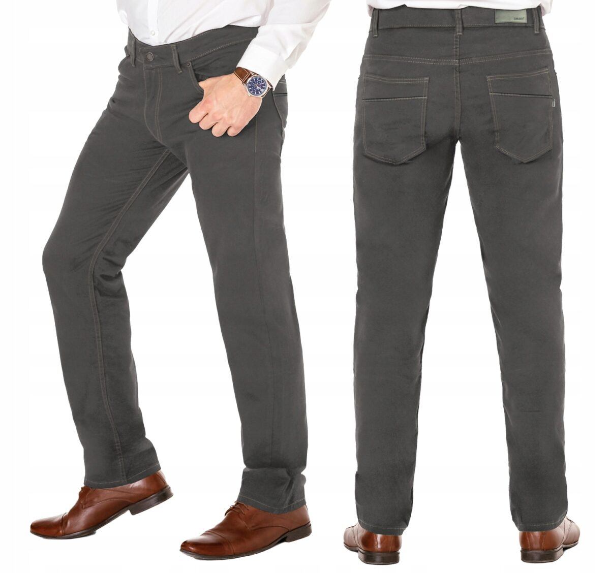 Fason typu REGULAR FIT czyli model z lekko zwężanymi nogawkami i standardowym stanem, stylowy i równocześnie wygodny, wyraźnie wysmuklający męską sylwetkę. Jest to wszechstronny krój, który ma świetnie wyprofilowane nogawki, pasujący dla panów o standardowej budowie a także tych nieco masywniejszych. Idealne nie tylko na co dzień lecz również jako element stroju do pracy. Doskonale wpisują się w światowe modowe trendy i są przy tym wygodne i trwałe. W zależności od dopasowanego do nich elementu garderoby będziesz zawsze odpowiednio ubrany na każdą okazję, zarówno na „sportowo” jak i na „elegancko” bo ta sama para spodni z marynarką czy koszulą tworzy styl bardziej formalny, natomiast z T-shirtem doskonale nadaje się na weekendowe spotkania. Idealny wybór dla mężczyzn ceniących nowoczesne rozwiązania, sportowy wygodny styl jak i casualową elegancję.