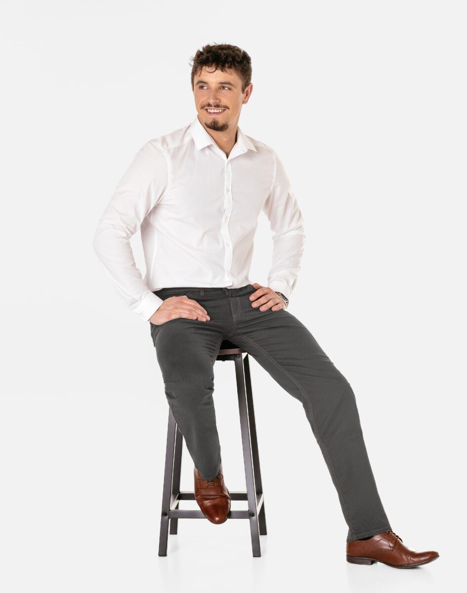 … to sprawdzony przez szerokie grono naszych zadowolonych klientów tradycyjny fason spodni pasujący do każdego typu sylwetki i podstawa gwarantująca sukces do wielu udanych stylizacji.