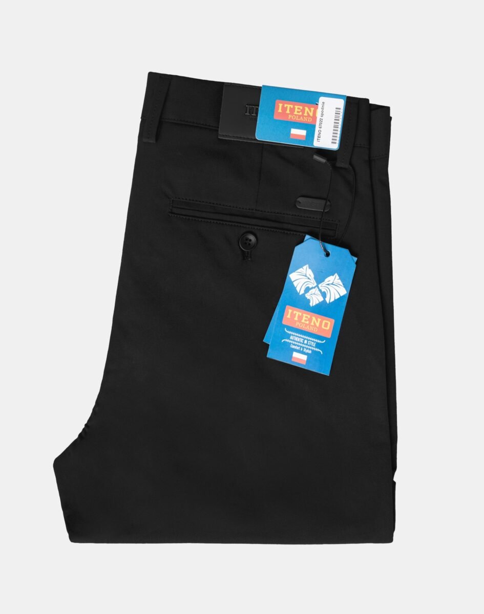 Spodnie męskie typu Chino zwane również Chinosami to klasyka wśród klasyki. Dedykowane są mężczyznom uwielbiającym elegancki i modny wygląd a jednocześnie sportowy charakter. Uszyte z wysokiej jakości, trwałej i mocnej, delikatnie elastycznej tkaniny średniej grubości o drobnym zapewniającym dużą wytrzymałość splocie. Niewielki dodatek spandexu ( stretch) sprawia że spodnie są bardziej elastyczne, dobrze dopasowują się do sylwetki, i są bardzo komfortowe w użytkowaniu. Łatwo się je zakłada i są znacznie wygodniejsze od spodni, które lycry nie mają. Domieszka spandexu wystarczy, by nadać spodniom niezwykłych właściwości, odczuwanych przez cały dzień. Przez to, że spandex trudno się gniecie, zapobiega marszczeniu i zwiotczeniu tkaniny i latami może utrzymywać jakość z dnia zakupu, pomagając zadbać o elegancki wizerunek. Zapinane na kryty zamek błyskawiczny i guzik posiadają charakterystyczne dla Chinosów dwie skośne kieszenie na dłonie na bokach spodni oraz dwie kieszenie wpuszczane z tyłu. W pasie szlufki umożliwiające stylizacje z paskiem. Jak w typowych Chinosach nogawka lekko zwężana nie zaprasowana na kant sprawia, że sylwetka wygląda w nich lekko i zgrabnie.