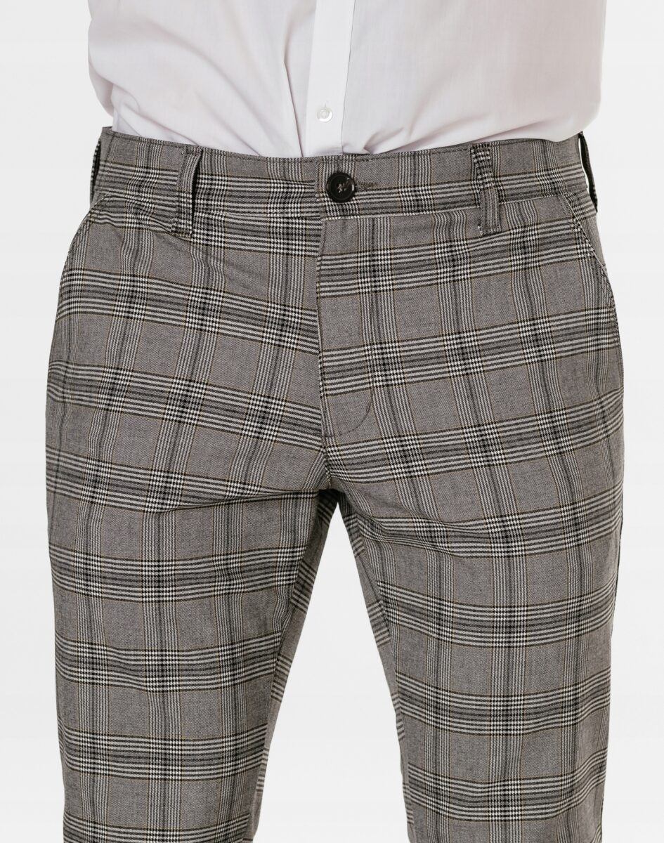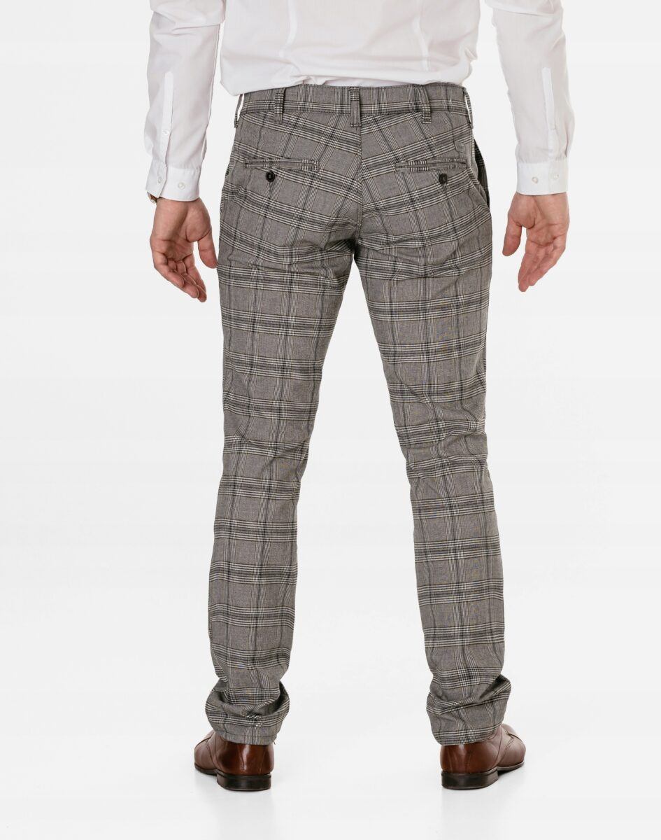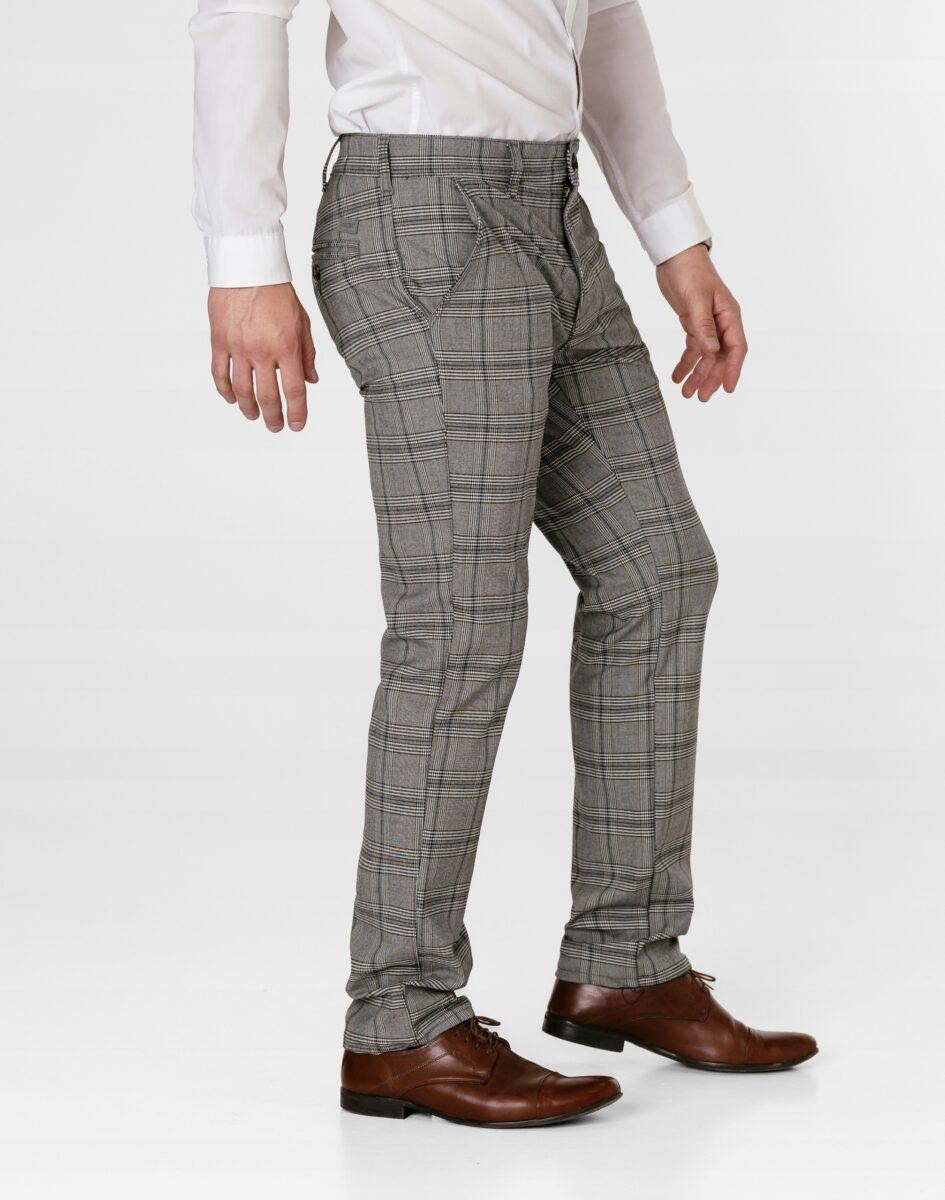 Styliści podkreślają, że chinosy w kratkę stanowią niezwykle wszechstronny element męskiej garderoby, który jest świetnym urozmaiceniem stylizacji na różne okazje. To klasyczne i eleganckie spodnie, które oferują nie tylko wygodę noszenia, ale także są znakomitą bazą do kreatywnego zestawiania ubrań. Stanowią doskonałą alternatywę zarówno dla eleganckich spodni w kant, jak i dla dżinsów. Z powodzeniem można je założyć do sportowej marynarki z koszulą a także do T-shirtu czy swetra. W wersji bardziej na luzie dobrze wyglądają z podwiniętymi nogawkami odsłaniającymi kostkę co w przypadku chinosów jest naturalnym sposobem ich noszenia. Niepozorne podwinięcie nogawek spodni nadaje stylizacjom ciekawej nonszalancji i zadziorności. Idealne nie tylko na co dzień jako element miejskiej mody casualowej, lecz również jako element stroju do pracy. W zależności od dopasowanego do nich elementu garderoby będziesz zawsze odpowiednio ubrany na każdą okazję, zarówno na „sportowo” jak i na „elegancko”. Doskonale wpisują się w światowe modowe trendy i są przy tym wygodne i trwałe. Idealny wybór dla mężczyzn ceniących nowoczesne rozwiązania, sportowy wygodny styl i nienaganną elegancję.