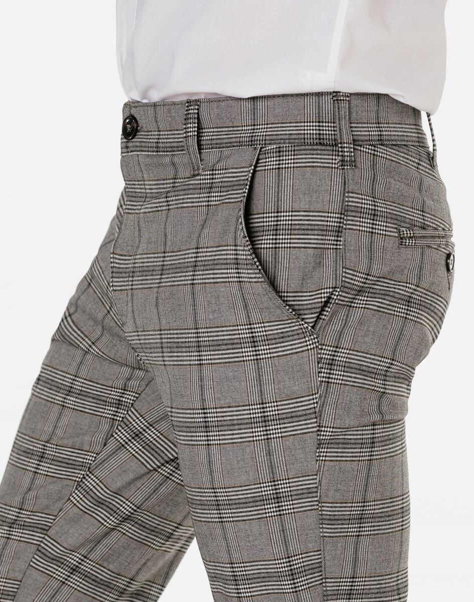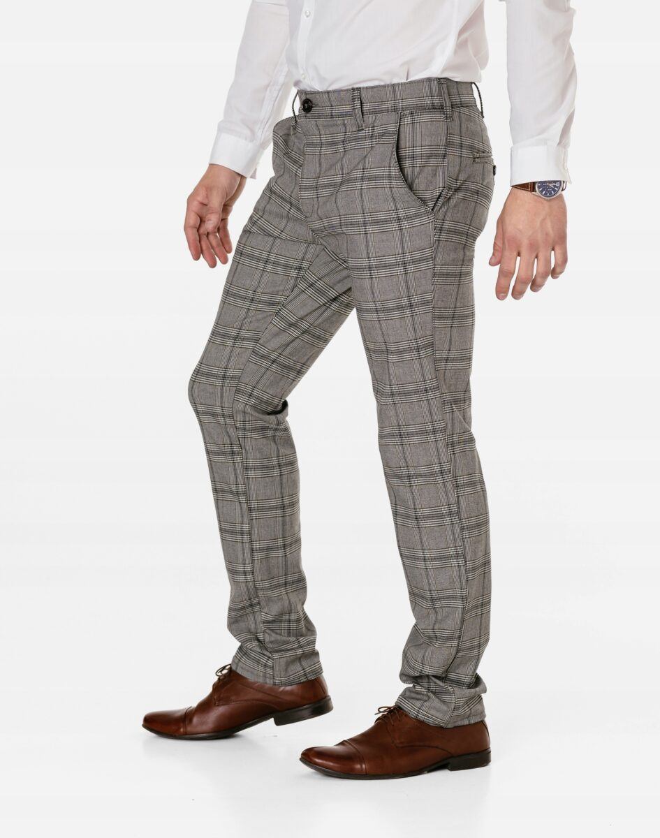 Styliści podkreślają, że chinosy w kratkę stanowią niezwykle wszechstronny element męskiej garderoby, który jest świetnym urozmaiceniem stylizacji na różne okazje. To klasyczne i eleganckie spodnie, które oferują nie tylko wygodę noszenia, ale także są znakomitą bazą do kreatywnego zestawiania ubrań. Stanowią doskonałą alternatywę zarówno dla eleganckich spodni w kant, jak i dla dżinsów. Z powodzeniem można je założyć do sportowej marynarki z koszulą a także do T-shirtu czy swetra. W wersji bardziej na luzie dobrze wyglądają z podwiniętymi nogawkami odsłaniającymi kostkę co w przypadku chinosów jest naturalnym sposobem ich noszenia. Niepozorne podwinięcie nogawek spodni nadaje stylizacjom ciekawej nonszalancji i zadziorności. Idealne nie tylko na co dzień jako element miejskiej mody casualowej, lecz również jako element stroju do pracy. W zależności od dopasowanego do nich elementu garderoby będziesz zawsze odpowiednio ubrany na każdą okazję, zarówno na „sportowo” jak i na „elegancko”. Doskonale wpisują się w światowe modowe trendy i są przy tym wygodne i trwałe. Idealny wybór dla mężczyzn ceniących nowoczesne rozwiązania, sportowy wygodny styl i nienaganną elegancję.