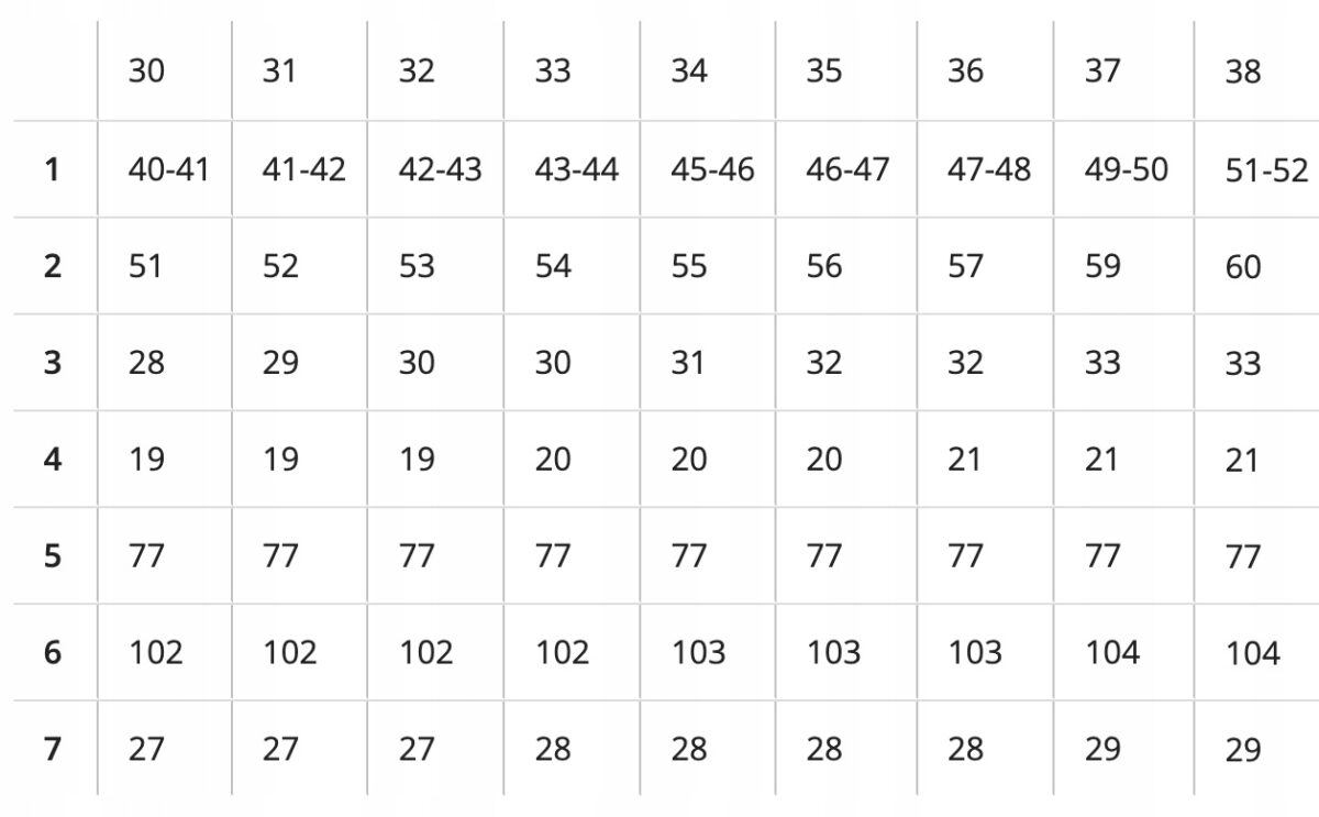 Obwód pasa: 98-100 cm (Sprawdź pozostałe wymiary w tabeli)