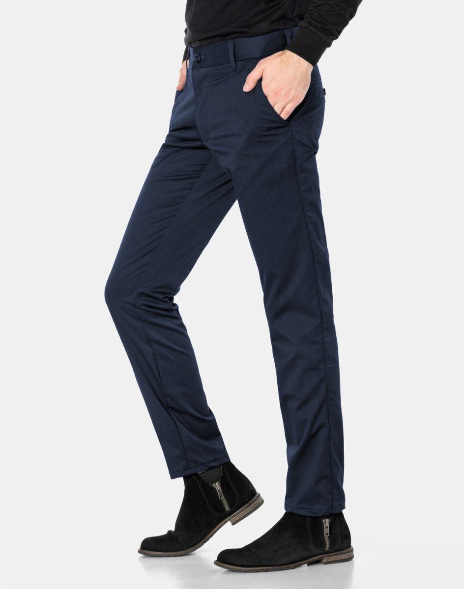 Spodnie męskie typu Chino zwane również Chinosami to klasyka wśród klasyki. Dedykowane są mężczyznom uwielbiającym elegancki i modny wygląd a jednocześnie sportowy charakter. Uszyte z wysokiej jakości, trwałej i mocnej, delikatnie elastycznej tkaniny bawełnianej średniej grubości o drobnym zapewniającym dużą wytrzymałość splocie. Niewielki dodatek elstanu (lycra) sprawia, że spodnie są bardziej elastyczne, dobrze dopasowują się do sylwetki, i są bardzo komfortowe w użytkowaniu. Łatwo się je zakłada i są znacznie wygodniejsze od Chinosów, które lycry nie mają. Poza tym bawełna ma tendencję do kurczenia się w praniu, dlatego lycra sprawia, że spodnie są wyjątkowo praktyczne i można je bez problemu założyć po wysuszeniu. Pozwalają na pełną swobodę ruchów, co daje wygodę przy siadaniu i zapewnia ogromny komfort noszenia. Zapinane na kryty zamek błyskawiczny i guzik posiadają charakterystyczne dla Chinosów dwie skośne kieszenie na dłonie na bokach spodni oraz dwie wpuszczane kieszenie z tyłu. W pasie szlufki umożliwiające stylizacje z paskiem. Jak w typowych Chinosach nogawka lekko zwężana nie zaprasowana na kant sprawia, że sylwetka wygląda w nich lekko i zgrabnie.