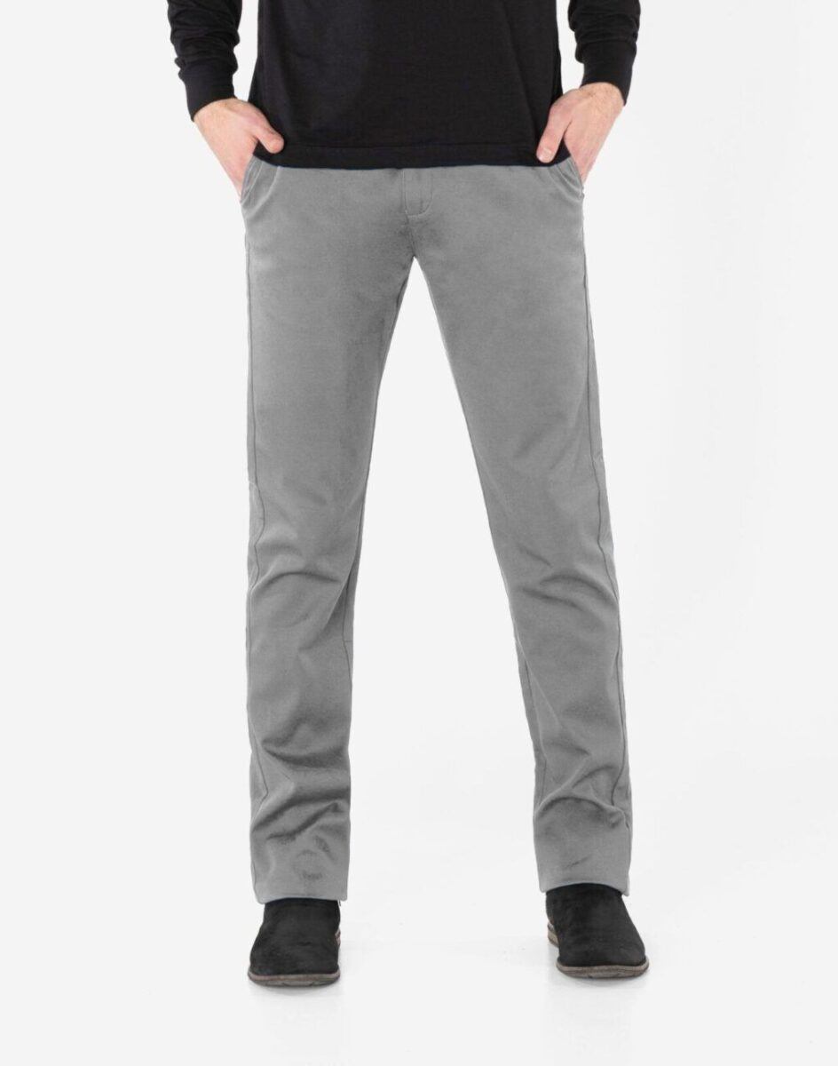 Spodnie męskie typu Chino zwane również Chinosami to klasyka wśród klasyki. Dedykowane mężczyznom uwielbiającym elegancki i modny wygląd a jednocześnie sportowy charakter. Uszyte z mocnej tkaniny bawełnianej średniej grubości o drobnym zapewniającym dużą wytrzymałość splocie. Zapinane na kryty zamek błyskawiczny i guzik posiadają charakterystyczne dla Chinosów dwie skośne kieszenie na dłonie na bokach spodni oraz mniejszą kieszonkę tzw. bilonówkę i dwie wpuszczane kieszenie ozdobione guzikami z tyłu spodni. W pasie szlufki umożliwiające stylizacje z paskiem. Użyta do produkcji spodni wysokiej jakości tkanina bawełniana dzięki niewielkiemu dodatkowi lycry (elastan) jest delikatnie elastyczna co sprawia że spodnie są wyjątkowo wygodne w użytkowaniu, pozwalają na pełną swobodę ruchów co daje wygodę przy siadaniu i zapewnia ogromny komfort noszenia. Klasyczna lekko zwężana nogawka nie zaprasowana na kant.