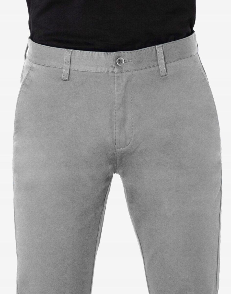 Spodnie męskie typu Chino zwane również Chinosami to klasyka wśród klasyki. Dedykowane mężczyznom uwielbiającym elegancki i modny wygląd a jednocześnie sportowy charakter. Uszyte z mocnej tkaniny bawełnianej średniej grubości o drobnym zapewniającym dużą wytrzymałość splocie. Zapinane na kryty zamek błyskawiczny i guzik posiadają charakterystyczne dla Chinosów dwie skośne kieszenie na dłonie na bokach spodni oraz mniejszą kieszonkę tzw. bilonówkę i dwie wpuszczane kieszenie. W pasie szlufki umożliwiające stylizacje z paskiem. Użyta do produkcji spodni wysokiej jakości tkanina bawełniana dzięki niewielkiemu dodatkowi lycry (elastan) jest delikatnie elastyczna co sprawia że spodnie są wyjątkowo wygodne w użytkowaniu, pozwalają na pełną swobodę ruchów co daje wygodę przy siadaniu i zapewnia ogromny komfort noszenia. Klasyczna lekko zwężana nogawka nie zaprasowana na kant.
