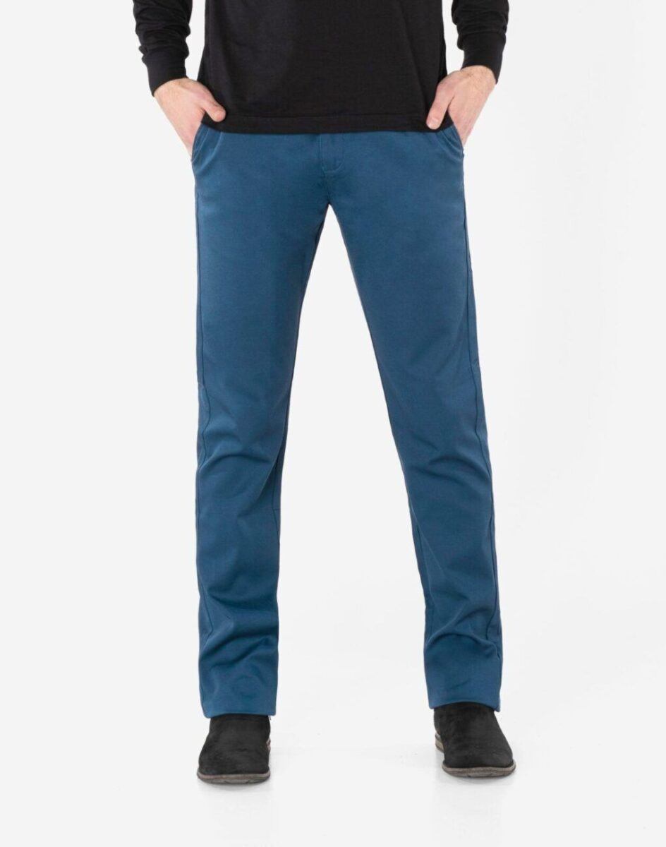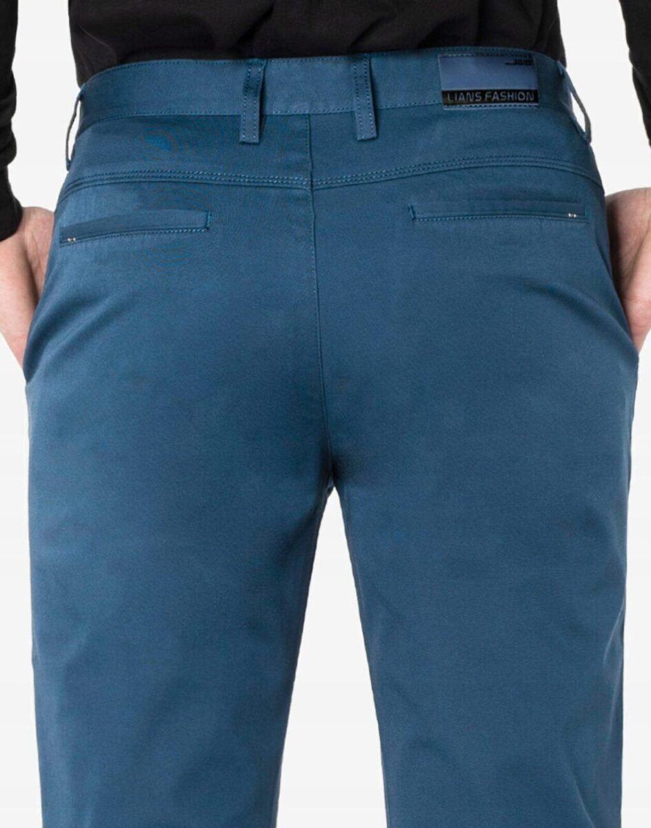 Spodnie męskie typu Chino zwane również Chinosami to klasyka wśród klasyki. Dedykowane mężczyznom uwielbiającym elegancki i modny wygląd a jednocześnie sportowy charakter. Uszyte z mocnej tkaniny bawełnianej średniej grubości o drobnym zapewniającym dużą wytrzymałość splocie. Zapinane na kryty zamek błyskawiczny i guzik posiadają charakterystyczne dla Chinosów dwie skośne kieszenie na dłonie na bokach spodni oraz mniejszą kieszonkę tzw. bilonówkę i dwie wpuszczane kieszenie z tyłu spodni. W pasie szlufki umożliwiające stylizacje z paskiem. Użyta do produkcji spodni wysokiej jakości tkanina bawełniana dzięki niewielkiemu dodatkowi lycry (elastan) jest delikatnie elastyczna co sprawia że spodnie są wyjątkowo wygodne w użytkowaniu, pozwalają na pełną swobodę ruchów co daje wygodę przy siadaniu i zapewnia ogromny komfort noszenia. Klasyczna lekko zwężana nogawka nie zaprasowana na kant.