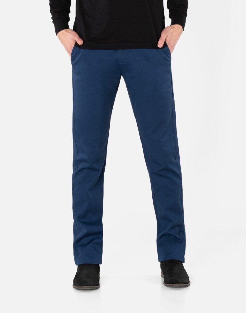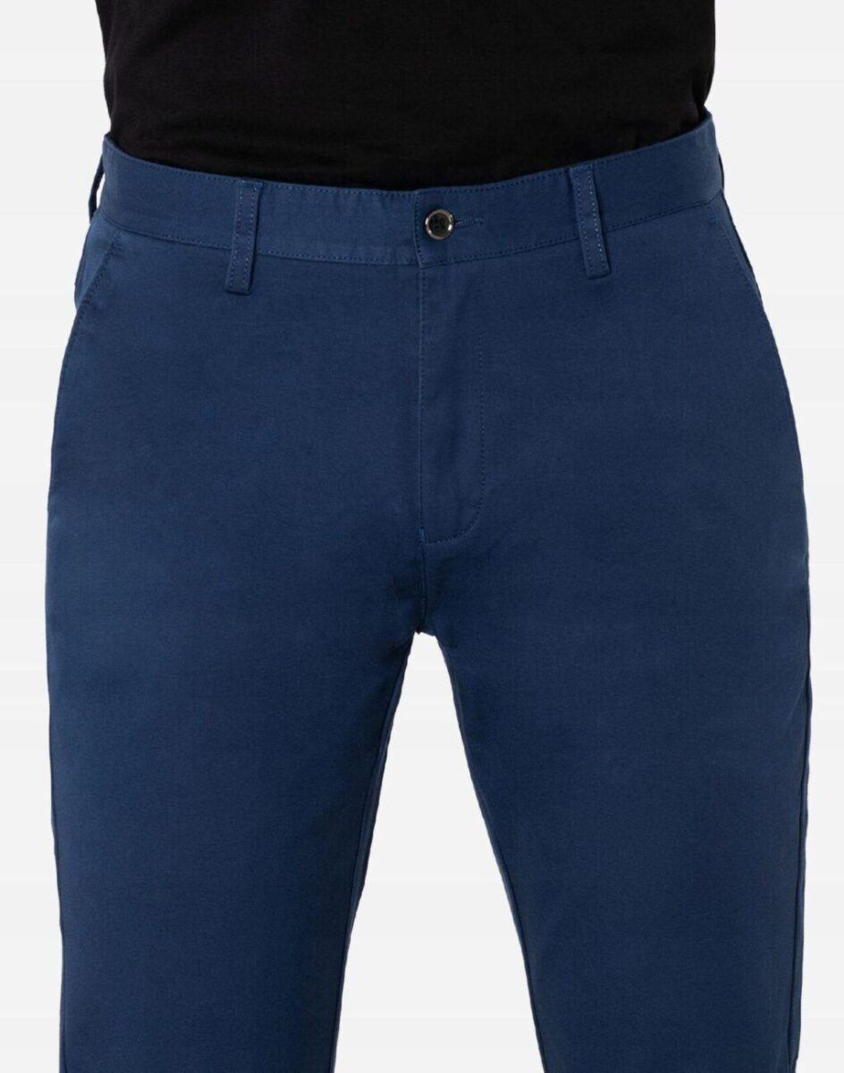 Eleganckie spodnie męskie typu Chino zwane również Chinosami to klasyka wśród klasyki. Uszyte z mocnej tkaniny bawełnianej o drobnym zapewniającym dużą wytrzymałość splocie. Zapinane na kryty zamek błyskawiczny i guzik posiadają charakterystyczne dla Chinosów dwie skośne kieszenie na dłonie na bokach spodni i dwie wpuszczane kieszenie z tyłu. W pasie szlufki umożliwiające stylizacje z paskiem. Użyta do produkcji spodni wysokiej jakości tkanina bawełniana jest delikatnie elastyczna co sprawia że spodnie są wyjątkowo wygodne w użytkowaniu, pozwalają na pełną swobodę ruchów co daje wygodę przy siadaniu i zapewnia ogromny komfort noszenia. Klasyczna lekko zwężana nogawka nie zaprasowana na kant.