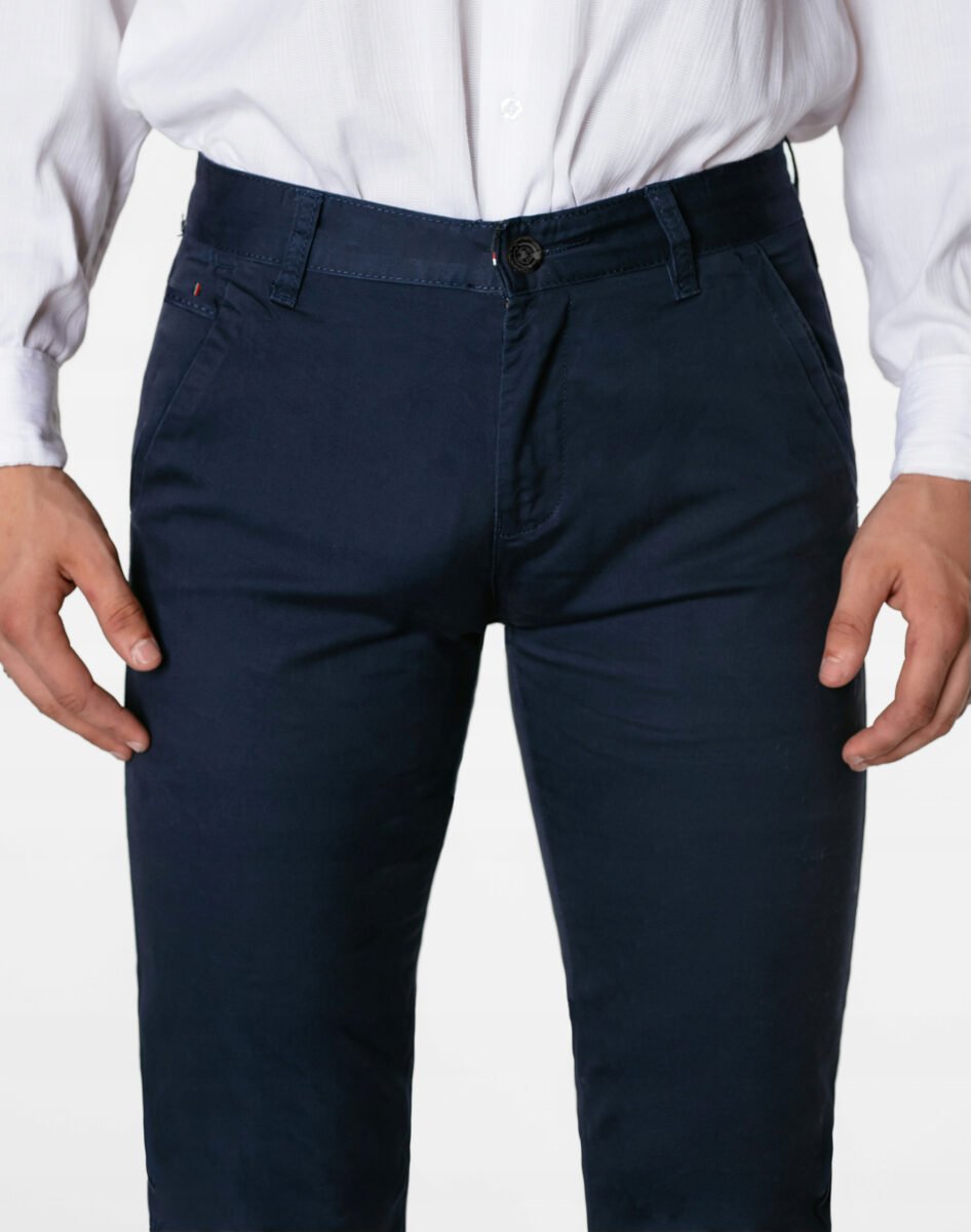 Spodnie męskie typu Chino zwane również Chinosami to klasyka wśród klasyki. Dedykowane mężczyznom uwielbiającym elegancki i modny wygląd a jednocześnie sportowy charakter. Uszyte z mocnej tkaniny bawełnianej średniej grubości o drobnym zapewniającym dużą wytrzymałość splocie. Zapinane na kryty zamek błyskawiczny i guzik posiadają charakterystyczne dla Chinosów dwie skośne kieszenie na dłonie na bokach spodni oraz jedną mniejszą tzw. bilonówkę, dwie wpuszczane kieszenie z tyłu. W pasie szlufki umożliwiające stylizacje z paskiem. Użyta do produkcji spodni wysokiej jakości tkanina bawełniana dzięki niewielkiemu dodatkowi lycry (elastan) jest delikatnie elastyczna co sprawia że spodnie są wyjątkowo wygodne w użytkowaniu, pozwalają na pełną swobodę ruchów co daje wygodę przy siadaniu i zapewnia ogromny komfort noszenia. Jak w typowych Chinosach nogawka lekko zwężana nie zaprasowana na kant sprawia, że sylwetka wygląda w nich lekko i zgrabnie.