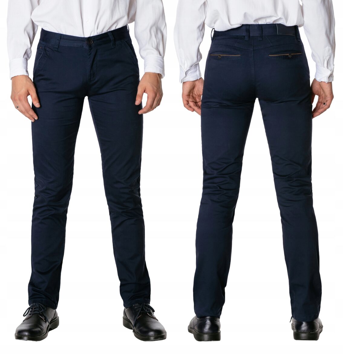 Eleganckie Wizytowe Spodnie Męskie Bawełniane CHINOSY Granatowe V717 W38L34