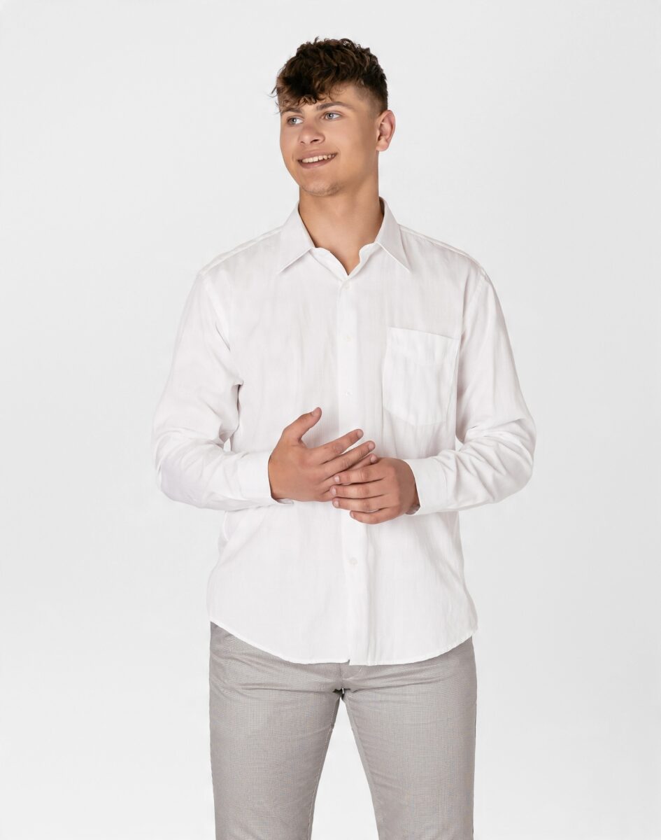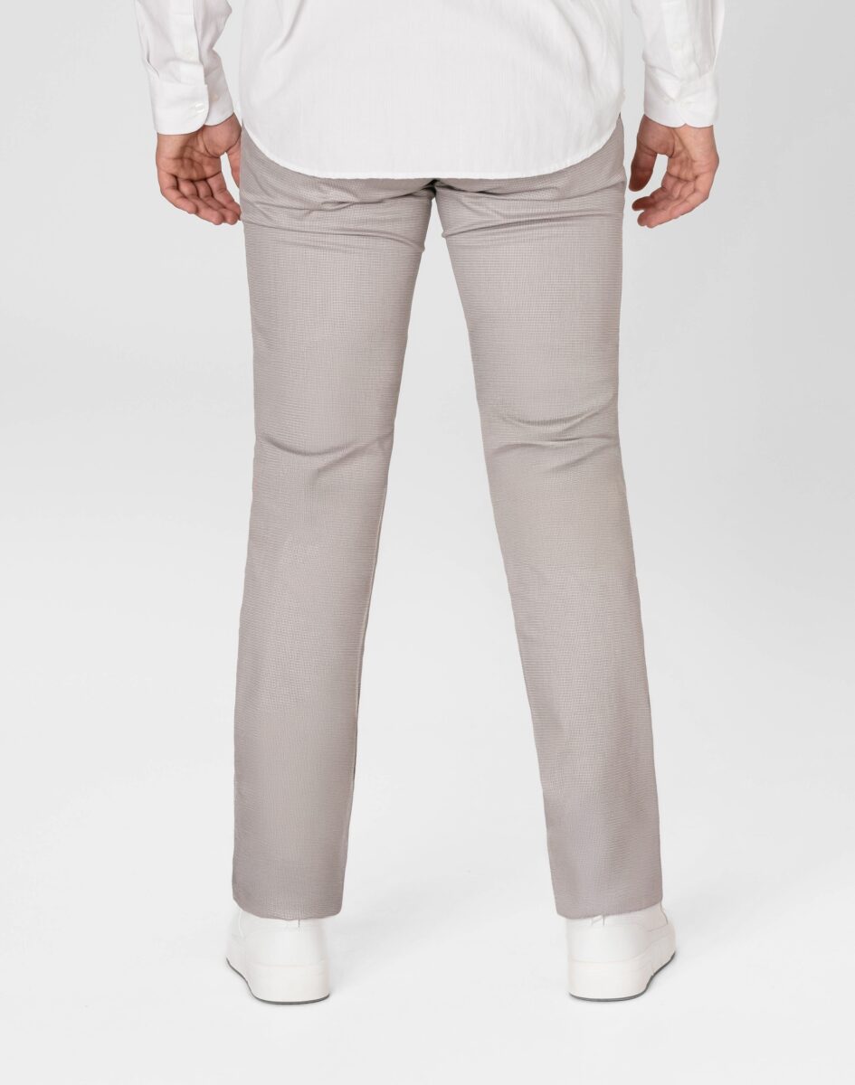 Spodnie męskie typu Chino zwane również Chinosami to klasyka wśród klasyki. Dedykowane są mężczyznom uwielbiającym elegancki i modny wygląd a jednocześnie sportowy charakter. Uszyte z wysokiej jakości, trwałej i mocnej, delikatnie elastycznej tkaniny bawełnianej średniej grubości o drobnym zapewniającym dużą wytrzymałość splocie. Niewielki dodatek elastanu (stretch) sprawia że spodnie są bardziej elastyczne, dobrze dopasowują się do sylwetki, i są bardzo komfortowe w użytkowaniu. Łatwo się je zakłada i są znacznie wygodniejsze od spodni, które lycry nie mają. Domieszka elastanu wystarczy, by nadać spodniom niezwykłych właściwości, odczuwanych przez cały dzień. Przez to, że elastan trudno się gniecie, zapobiega marszczeniu i zwiotczeniu tkaniny i latami może utrzymywać jakość z dnia zakupu, pomagając zadbać o elegancki wizerunek. Zapinane na kryty zamek błyskawiczny i guzik posiadają charakterystyczne dla Chinosów dwie skośne kieszenie na dłonie na bokach spodni oraz dwie wpuszczane kieszenie z tyłu. W pasie szlufki umożliwiające stylizacje z paskiem. Jak w typowych Chinosach nogawka lekko zwężana nie zaprasowana na kant sprawia, że sylwetka wygląda w nich lekko i zgrabnie.