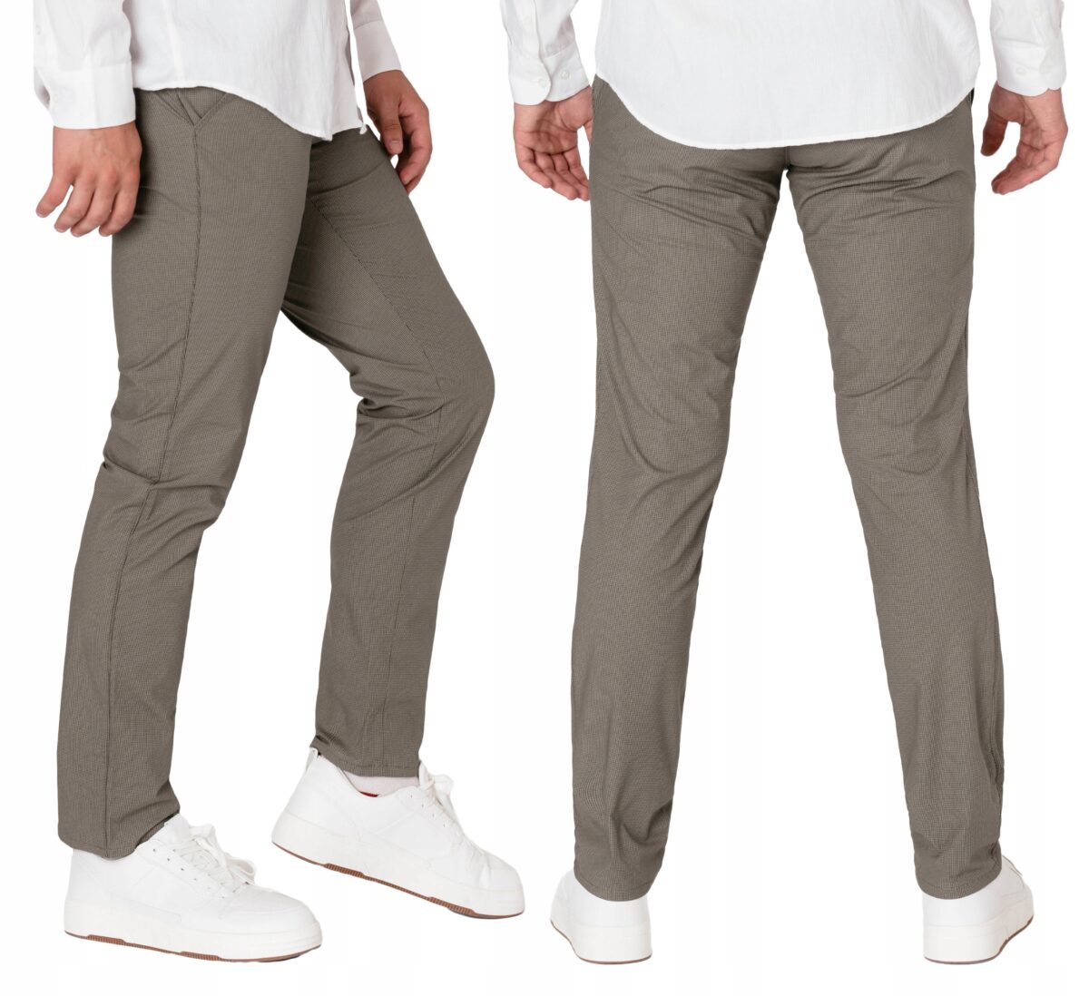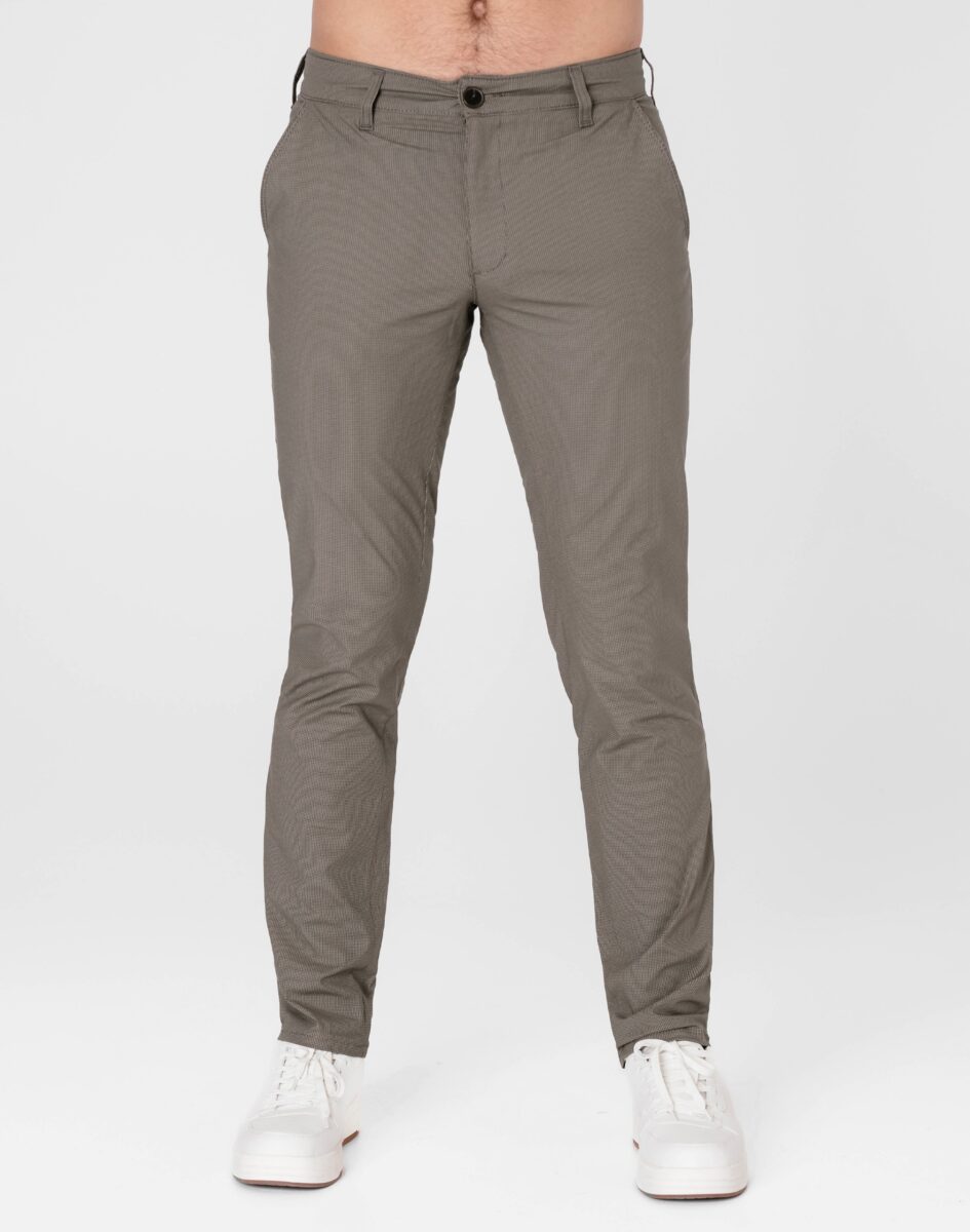 Spodnie męskie typu Chino zwane również Chinosami to klasyka wśród klasyki. Dedykowane są mężczyznom uwielbiającym elegancki i modny wygląd a jednocześnie sportowy charakter. Uszyte z wysokiej jakości, trwałej i mocnej, delikatnie elastycznej tkaniny bawełnianej średniej grubości o drobnym zapewniającym dużą wytrzymałość splocie. Niewielki dodatek spandexu (stretch) sprawia że spodnie są bardziej elastyczne, dobrze dopasowują się do sylwetki, i są bardzo komfortowe w użytkowaniu. Łatwo się je zakłada i są znacznie wygodniejsze od spodni, które lycry nie mają. Domieszka elastanu wystarczy, by nadać spodniom niezwykłych właściwości, odczuwanych przez cały dzień. Przez to, że spandex trudno się gniecie, zapobiega marszczeniu i zwiotczeniu tkaniny i latami może utrzymywać jakość z dnia zakupu, pomagając zadbać o elegancki wizerunek. Zapinane na kryty zamek błyskawiczny i guzik posiadają charakterystyczne dla Chinosów dwie skośne kieszenie na dłonie na bokach spodni oraz dwie wpuszczane kieszenie z tyłu. W pasie szlufki umożliwiające stylizacje z paskiem. Jak w typowych Chinosach nogawka lekko zwężana nie zaprasowana na kant sprawia, że sylwetka wygląda w nich lekko i zgrabnie.