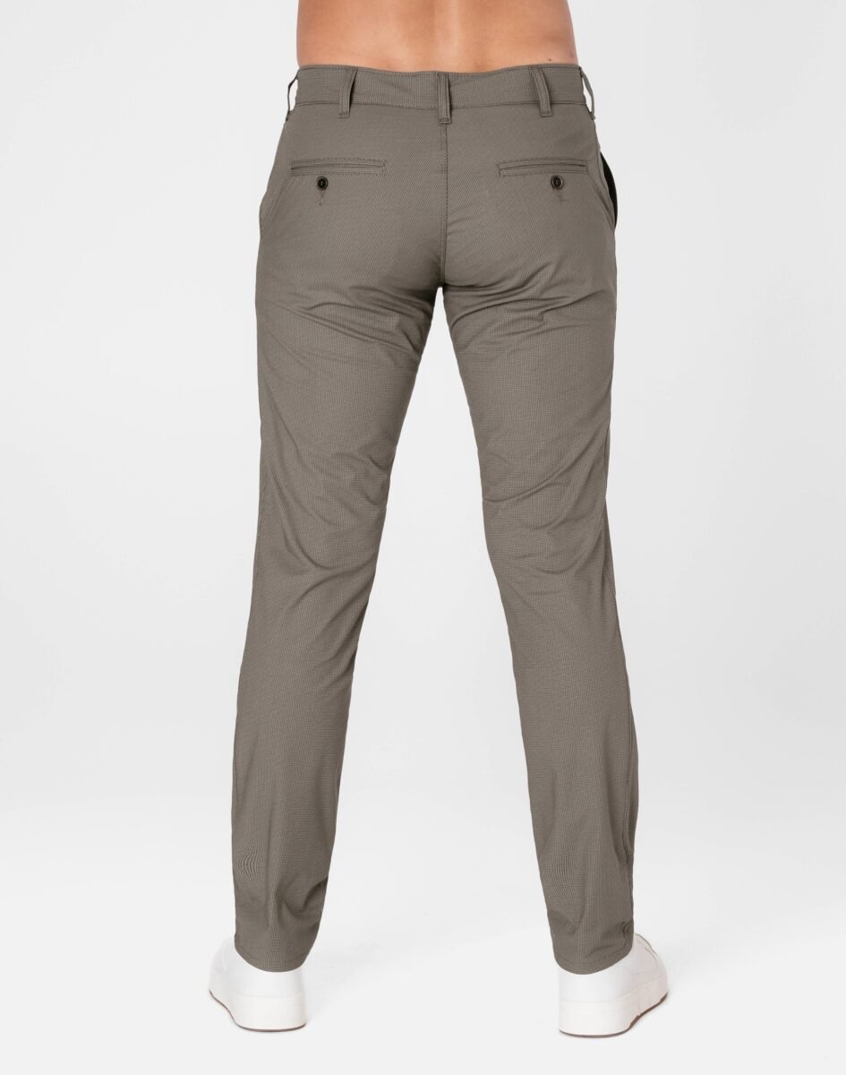 Spodnie męskie typu Chino zwane również Chinosami to klasyka wśród klasyki. Dedykowane są mężczyznom uwielbiającym elegancki i modny wygląd a jednocześnie sportowy charakter. Uszyte z wysokiej jakości, trwałej i mocnej, delikatnie elastycznej tkaniny bawełnianej średniej grubości o drobnym zapewniającym dużą wytrzymałość splocie. Niewielki dodatek spandexu (stretch) sprawia że spodnie są bardziej elastyczne, dobrze dopasowują się do sylwetki, i są bardzo komfortowe w użytkowaniu. Łatwo się je zakłada i są znacznie wygodniejsze od spodni, które lycry nie mają. Domieszka elastanu wystarczy, by nadać spodniom niezwykłych właściwości, odczuwanych przez cały dzień. Przez to, że spandex trudno się gniecie, zapobiega marszczeniu i zwiotczeniu tkaniny i latami może utrzymywać jakość z dnia zakupu, pomagając zadbać o elegancki wizerunek. Zapinane na kryty zamek błyskawiczny i guzik posiadają charakterystyczne dla Chinosów dwie skośne kieszenie na dłonie na bokach spodni oraz dwie wpuszczane kieszenie z tyłu. W pasie szlufki umożliwiające stylizacje z paskiem. Jak w typowych Chinosach nogawka lekko zwężana nie zaprasowana na kant sprawia, że sylwetka wygląda w nich lekko i zgrabnie.