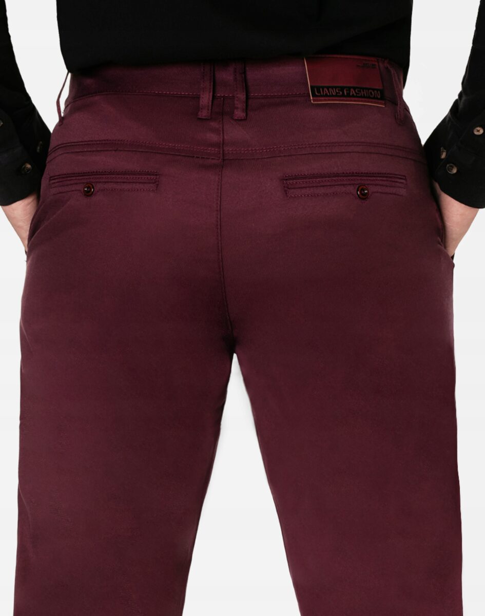 Spodnie męskie model # 11982 typu Chino zwane również Chinosami to klasyka wśród klasyki. Dedykowane są mężczyznom uwielbiającym elegancki i modny wygląd a jednocześnie sportowy charakter. Uszyte z wysokiej jakości, trwałej i mocnej, delikatnie elastycznej tkaniny bawełnianej średniej grubości o drobnym zapewniającym dużą wytrzymałość splocie. Niewielki dodatek elastanu (lycra) sprawia, że spodnie są bardziej elastyczne, dobrze dopasowują się do sylwetki, i są bardzo komfortowe w użytkowaniu. Łatwo się je zakłada i są znacznie wygodniejsze od Chinosów, które lycry nie mają. Poza tym bawełna ma tendencję do kurczenia się w praniu, dlatego lycra sprawia, że spodnie są wyjątkowo praktyczne i można je bez problemu założyć po wysuszeniu. Pozwalają na pełną swobodę ruchów, co daje wygodę przy siadaniu i zapewnia ogromny komfort noszenia. Zapinane na kryty zamek błyskawiczny i guzik z firmowym logo posiadają charakterystyczne dla Chinosów dwie skośne kieszenie na dłonie na bokach spodni, oraz mniejszą tzw. bilonówkę i dwie wpuszczane kieszenie z tyłu. W pasie szlufki umożliwiające stylizacje z paskiem. Jak w typowych Chinosach nogawka lekko zwężana nie zaprasowana na kant sprawia, że sylwetka wygląda w nich lekko i zgrabnie.