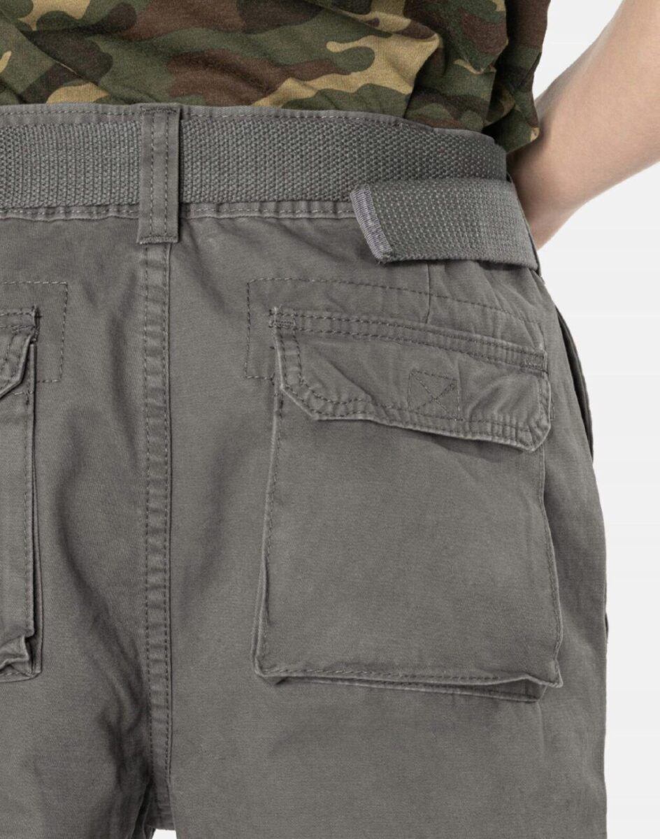 - 2 duże kieszenie naszywane na pośladkach typu cargo, kryte patkami zapinanymi na rzepy