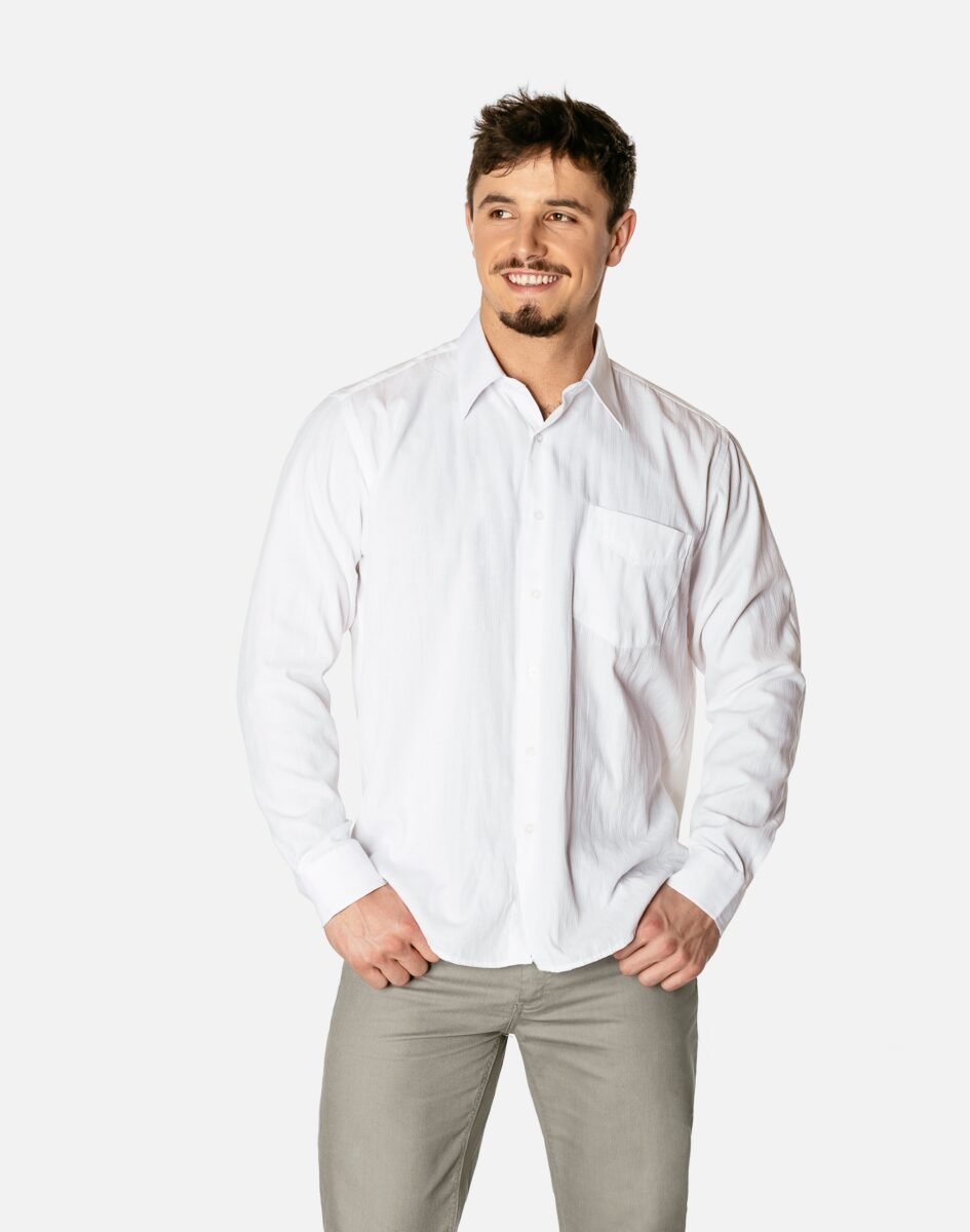Fason typu REGULAR FIT (tak jak kultowy model 501 marki Levi’s) z prostą nogawką na całej długości i standardowym stanem, stylowy i równocześnie wygodny, pasujący dla panów o standardowej budowie, a także tych nieco masywniejszych. Idealne nie tylko na co dzień lecz również jako element stroju do pracy. Doskonale wpisują się w światowe modowe trendy i są przy tym wygodne i trwałe. W zależności od dopasowanego do nich elementu garderoby będziesz zawsze odpowiednio ubrany na każdą okazję, zarówno na "sportowo" jak i na "elegancko" bo ta sama para spodni z marynarką czy koszulą tworzy styl bardziej formalny natomiast z T-shirtem doskonale nadaje się na weekendowe spotkania. Idealny wybór dla mężczyzn ceniących nowoczesne rozwiązania, sportowy wygodny styl i nienaganną elegancję.