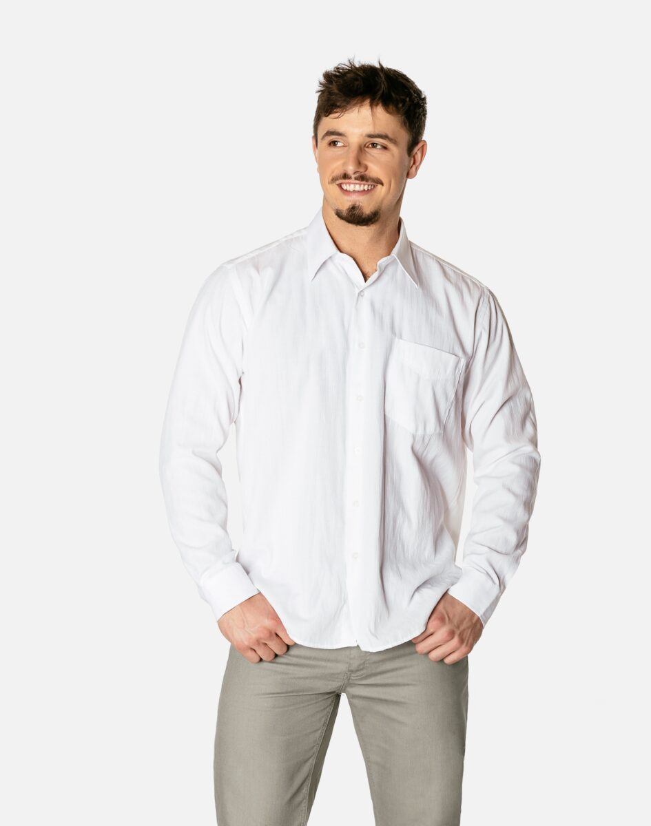 Fason typu REGULAR FIT (tak jak kultowy model 501 marki Levi’s) z prostą nogawką na całej długości i standardowym stanem, stylowy i równocześnie wygodny, pasujący dla panów o standardowej budowie, a także tych nieco masywniejszych. Idealne nie tylko na co dzień lecz również jako element stroju do pracy. Doskonale wpisują się w światowe modowe trendy i są przy tym wygodne i trwałe. W zależności od dopasowanego do nich elementu garderoby będziesz zawsze odpowiednio ubrany na każdą okazję, zarówno na „sportowo” jak i na „elegancko” bo ta sama para spodni z marynarką czy koszulą tworzy styl bardziej formalny natomiast z T-shirtem doskonale nadaje się na weekendowe spotkania. Idealny wybór dla mężczyzn ceniących nowoczesne rozwiązania, sportowy wygodny styl i nienaganną elegancję.