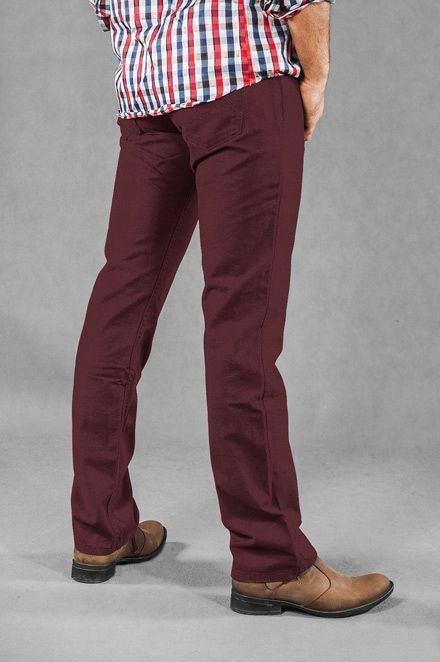 Klasyczne spodnie męskie bawełniane HUNTER 110/001 ze standardowym stanem i klasyczną lekko zwężaną nogawką to jeden z najczęściej wybieranych modeli spodni. Wykonane z wysokiej jakości gęstej, trwałej i mocnej tkaniny 100% bawełnianej typu „Burgundy Denim” o jednolitym wybarwieniu. Zapinane są na kryty zamek błyskawiczny i metalowy guzik sygnowany logiem firmy. Z przodu mają dwie kieszonki zaokrąglone oraz mniejszą kieszonkę tzw. bilonówkę, a na tyle klasyczne kieszenie naszywane jak w typowych spodniach jeansowych. Na tylnej kieszeni skórzana naszywka z logo firmy HUNTER. Najbardziej podatne na uszkodzenia miejsca wzmocnione są dodatkowymi przeszyciami oraz nitami. W pasie szlufki umożliwiające stylizacje z paskiem.